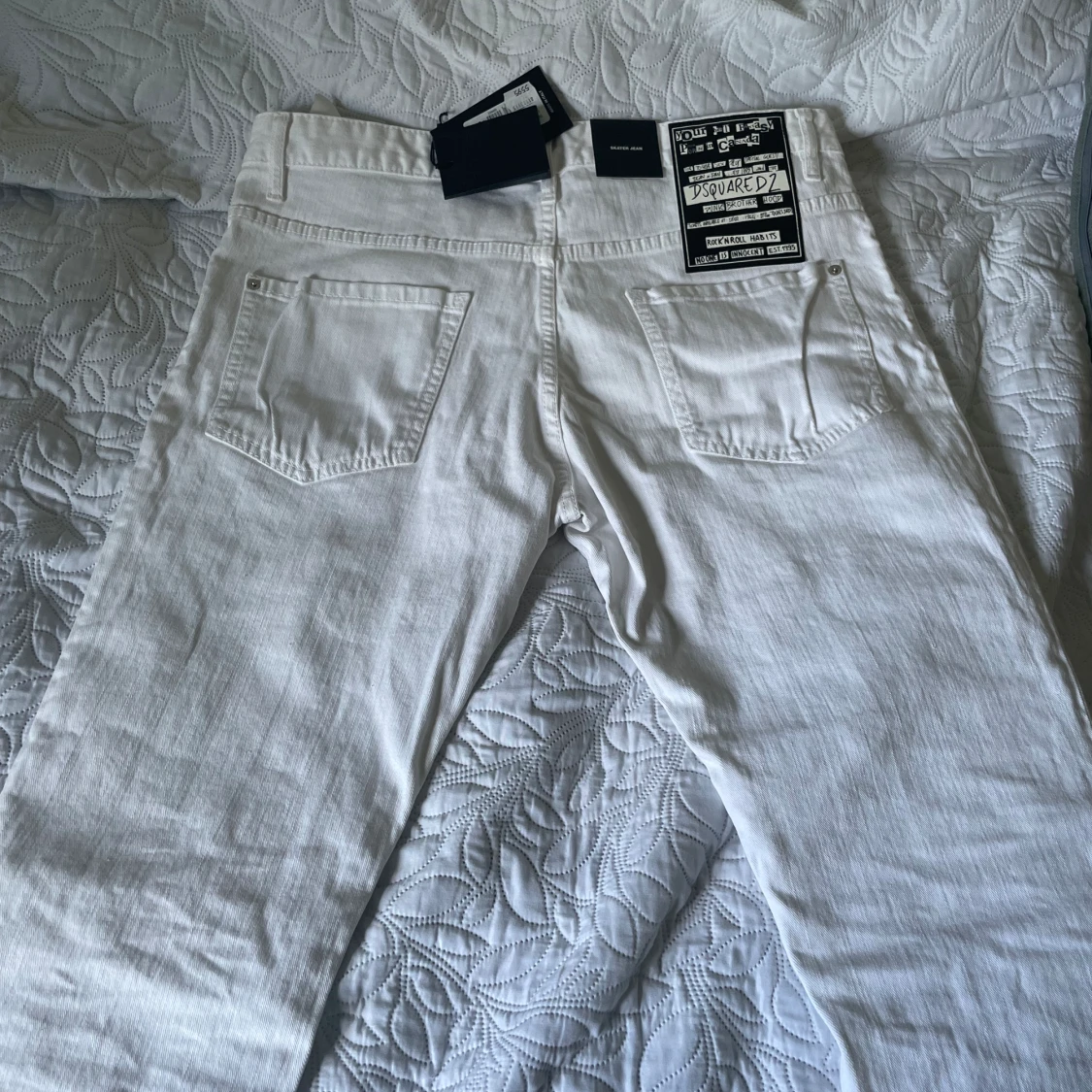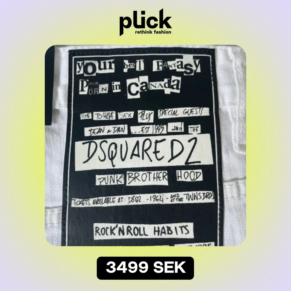 Hej! Säljer en äkta dsquared2 jeans i vit färg. Aldrig använt den och följa med extra knappar och lapparna.