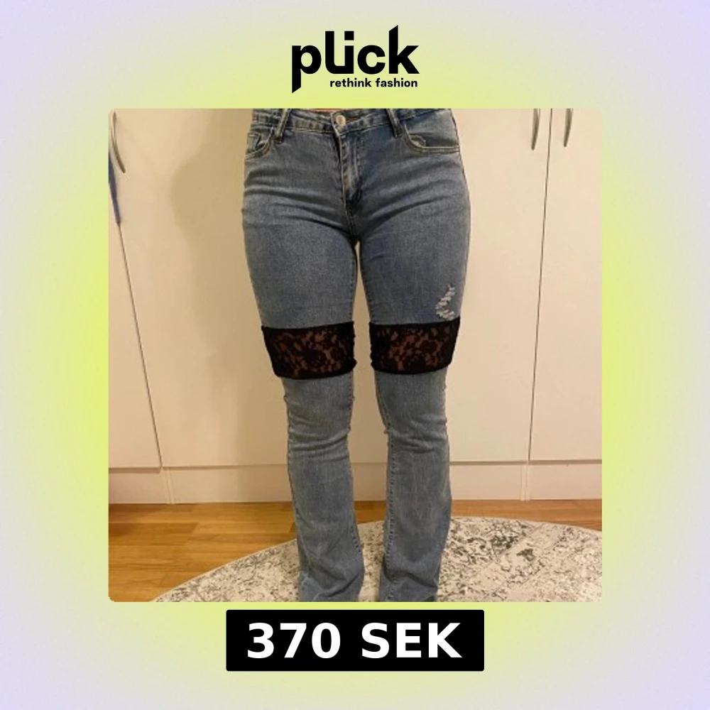 Vår första design blir verklighet!! Förlängningen sker nu mitt på låret🤯vilket vi tycker är ashäftigt!! Jeansmaterialet är väldigt stretchigt men spetsen är tyvärr inte lika stretchig vilket gör att den lårvidd som står kommer jeansen passa bäst på💙Strl M är en uppskattning så vi rekommenderar att mäta sig själv och kika på måtten i sista bilden!!😊Hör av dig vid frågor!!