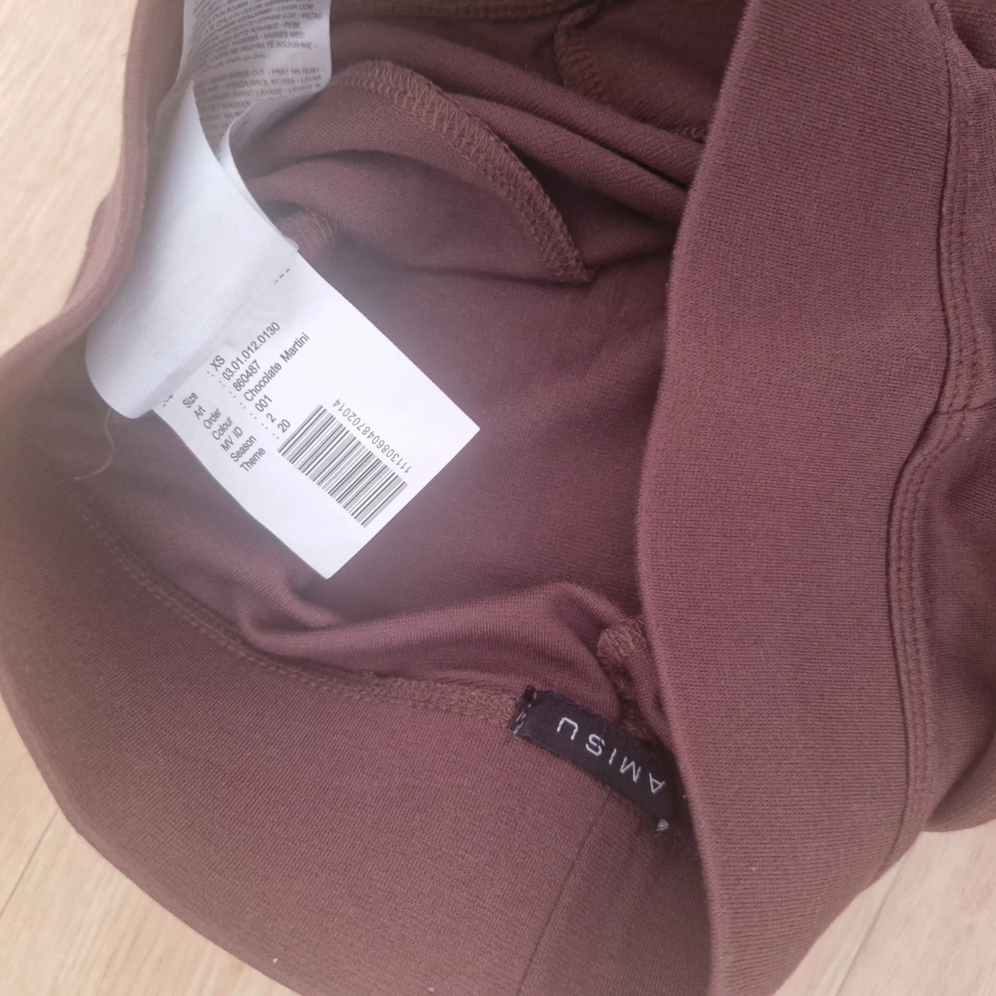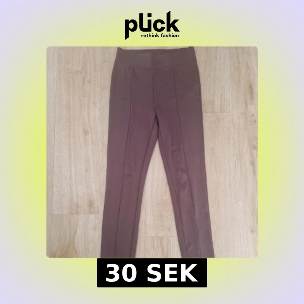 Snygga bruna leggings från Amisu i storlek XS. De har hög midja och är gjorda i mjukt bomullsmaterial med stretch. Söm längs benen ger en stilren look. Perfekta för en chill och avslappnad stil.