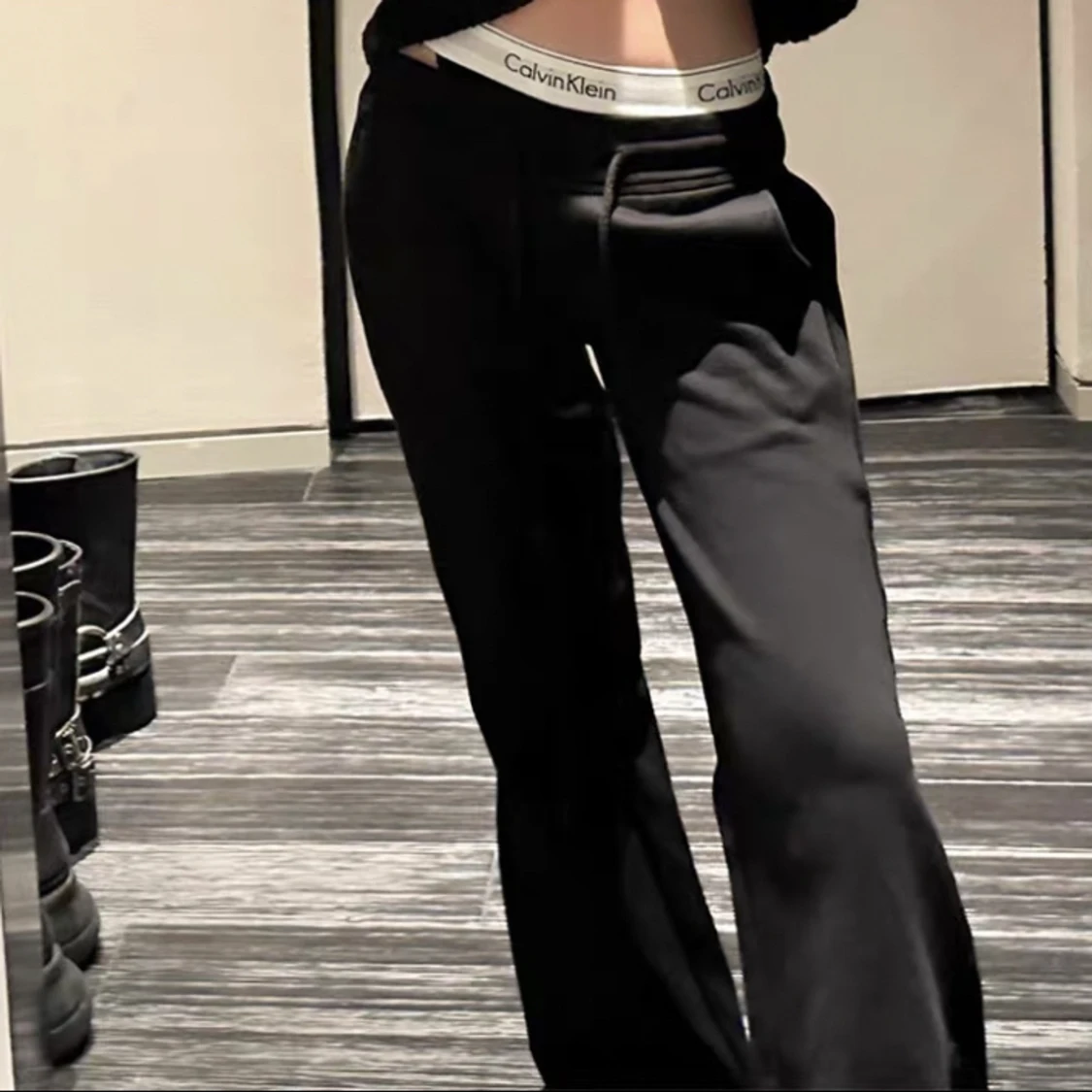 Svarta lågmidjade mjukisbyxor me lite bootcut!! Sjukt sköna och snygga, haft de typ en gång då de var för korta ( är 175cm)