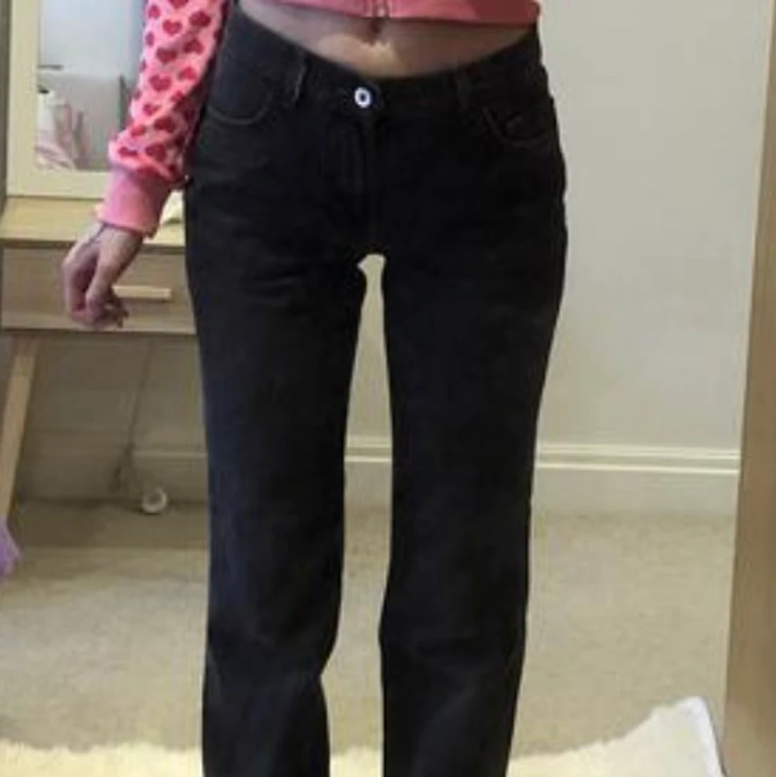 Lågmidjade bootcut jeans från asos, storlek 30/28 men skulle säga att det är små i storleken så passar typ S. Korta i längden så passar de som är max 160. Köpt för runt 340.