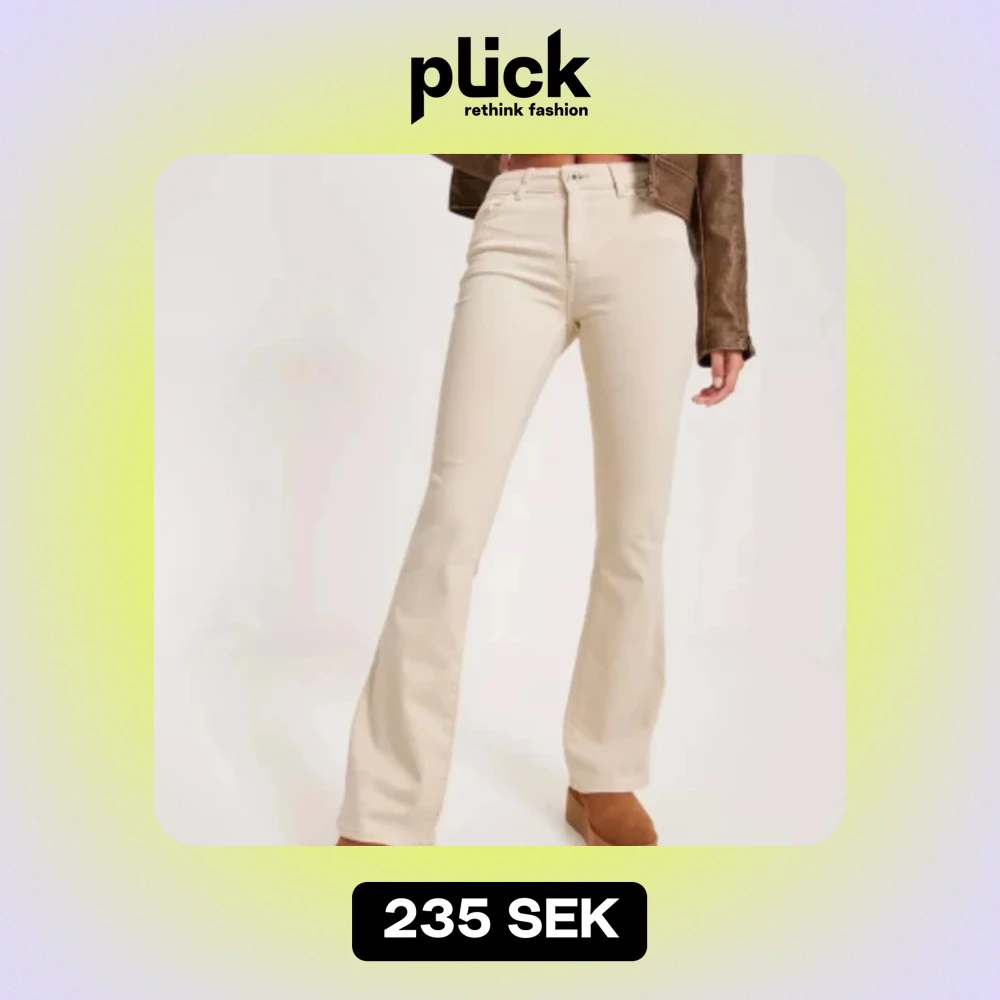 Dessa är ett par mid waist flared jeans. Jeansen har en jätte fin beige färg, och har bara används en gång! Ordinarie pris på jeansen är 549kr, men jag säljer dem för 140kr✨
