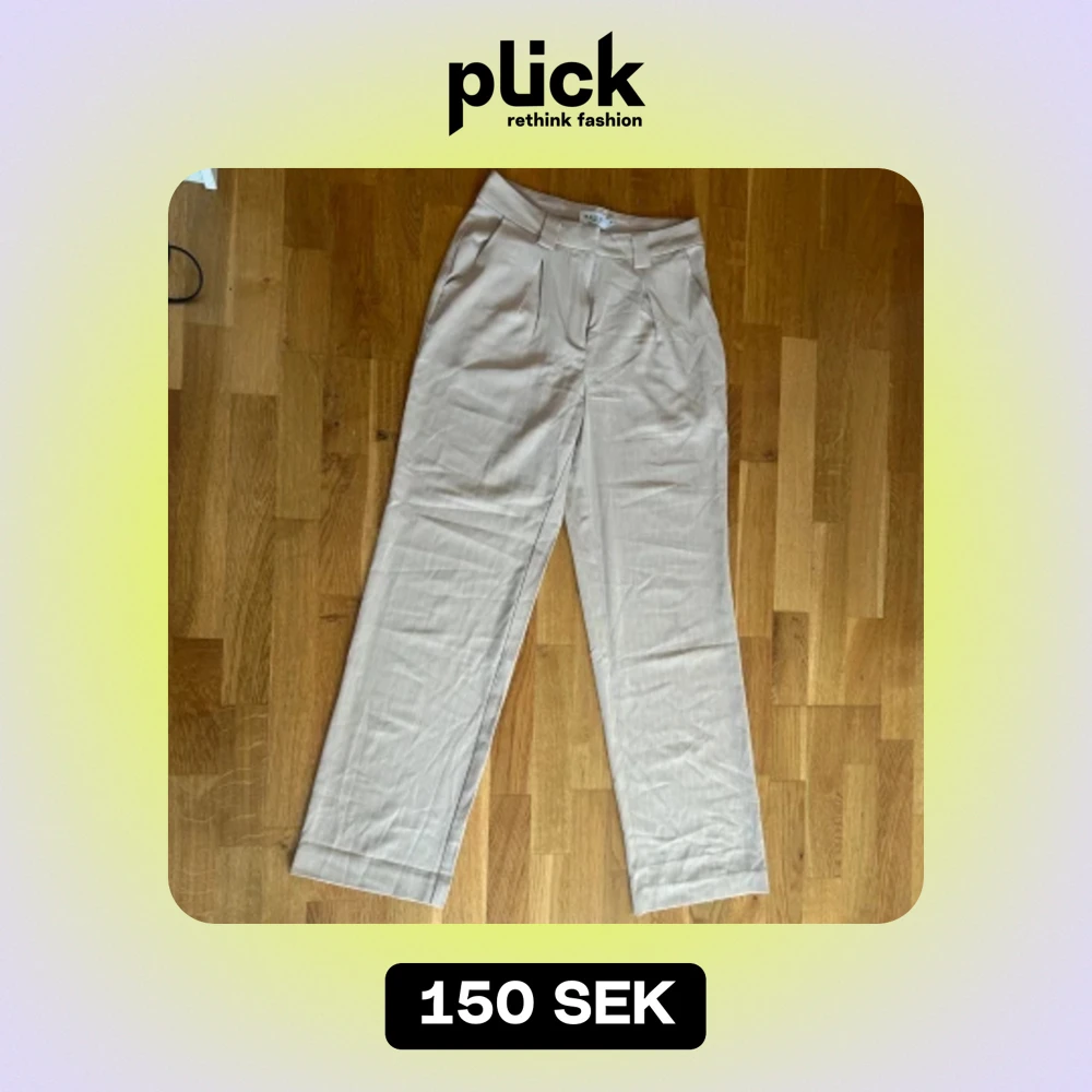 Ett par fina beiga kostymbyxor med vita ränder från NA-KD. I fint skick! Storlek 36