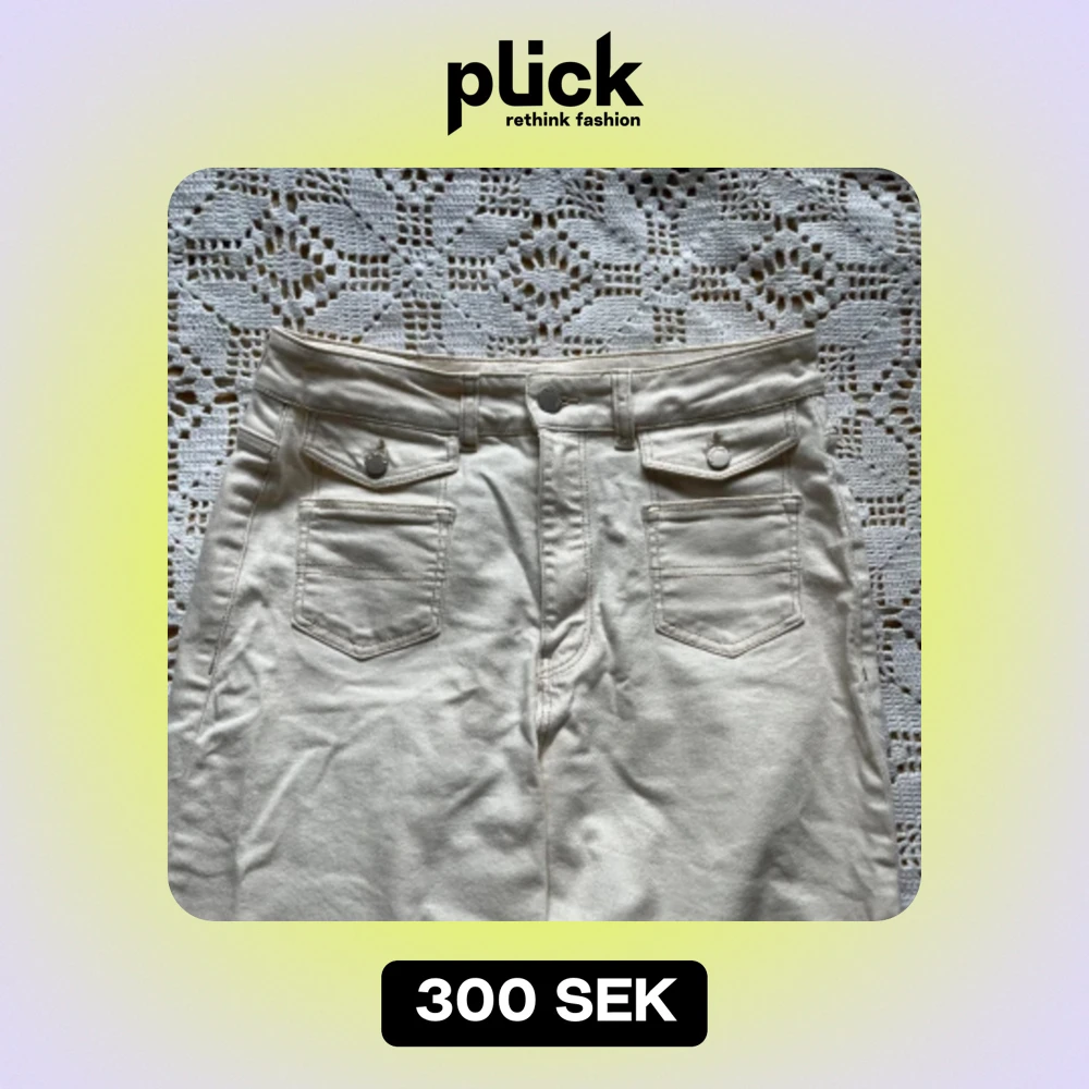 Creamvita wideleg jeans med beiga sömmar och coola fickor. Endast använda en gång.⛅️ 37cm tvärs över midjan 80cm innerbenslängd
