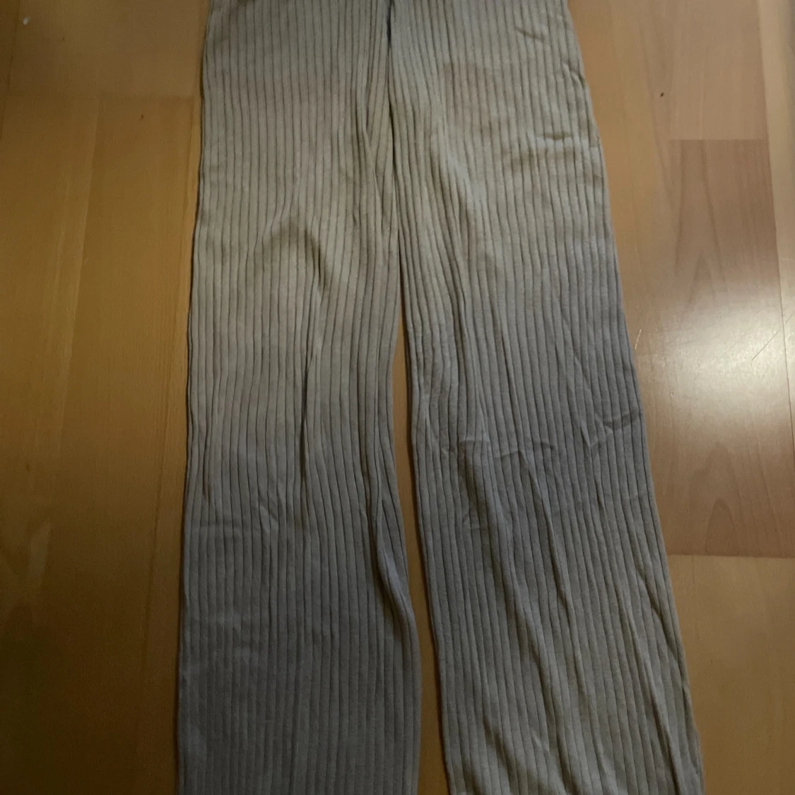 Säljer ett par beige ribbade byxor från SOC i storlek S. Byxorna har hög midja och raka ben med en skön loose passform. Tillverkade i mjukt material som passar perfekt för en chill och avslappnad stil.