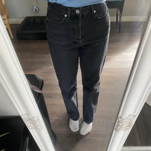 säljer dessa svarta jeans från bik bok i storlek 28 längd 32 dom är dock uppsydda i benen och sitter bra på mig som är 170 cm ca, dom är i modellen REGULAR WIDE säljer dom för 120kr