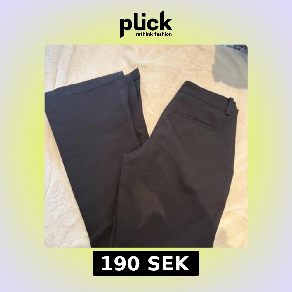 Snygga svarta kostymbyxor från Bik Bok i storlek 34. Byxorna har en slits nedtill och är lågmidjade med bootcut passform.