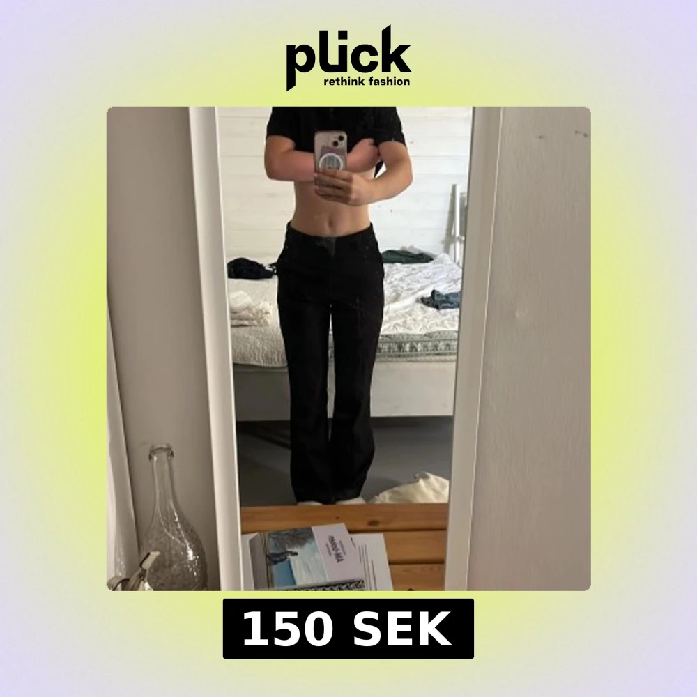 Säljer ett par svarta kostymbyxor med bootcut-snitt och hög midja som köptes från bikbok för 400kr. Byxorna har en klassisk look med raka ben som blir vidare nedtill. Använt fåtal gånger. Perfekta för dig som gillar en stilren och tidlös vibe.