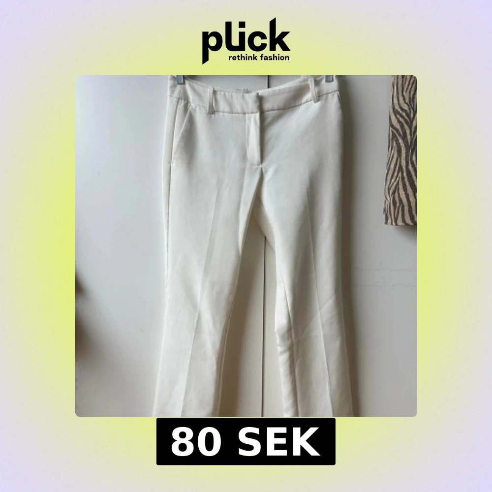 Vita bootcut kostymbyxor - Snygga vita kostymbyxor med bootcut-snitt och klassiska fickor fram. Byxorna har hällor för bälte och är perfekta för en clean och stilren look. Säljer nu dessa byxor för har blivit för stora på mig… byxorna är i storlek 40 men skulle säga passar även i storlek S också! Obs ( har ett litet hål där fram).
