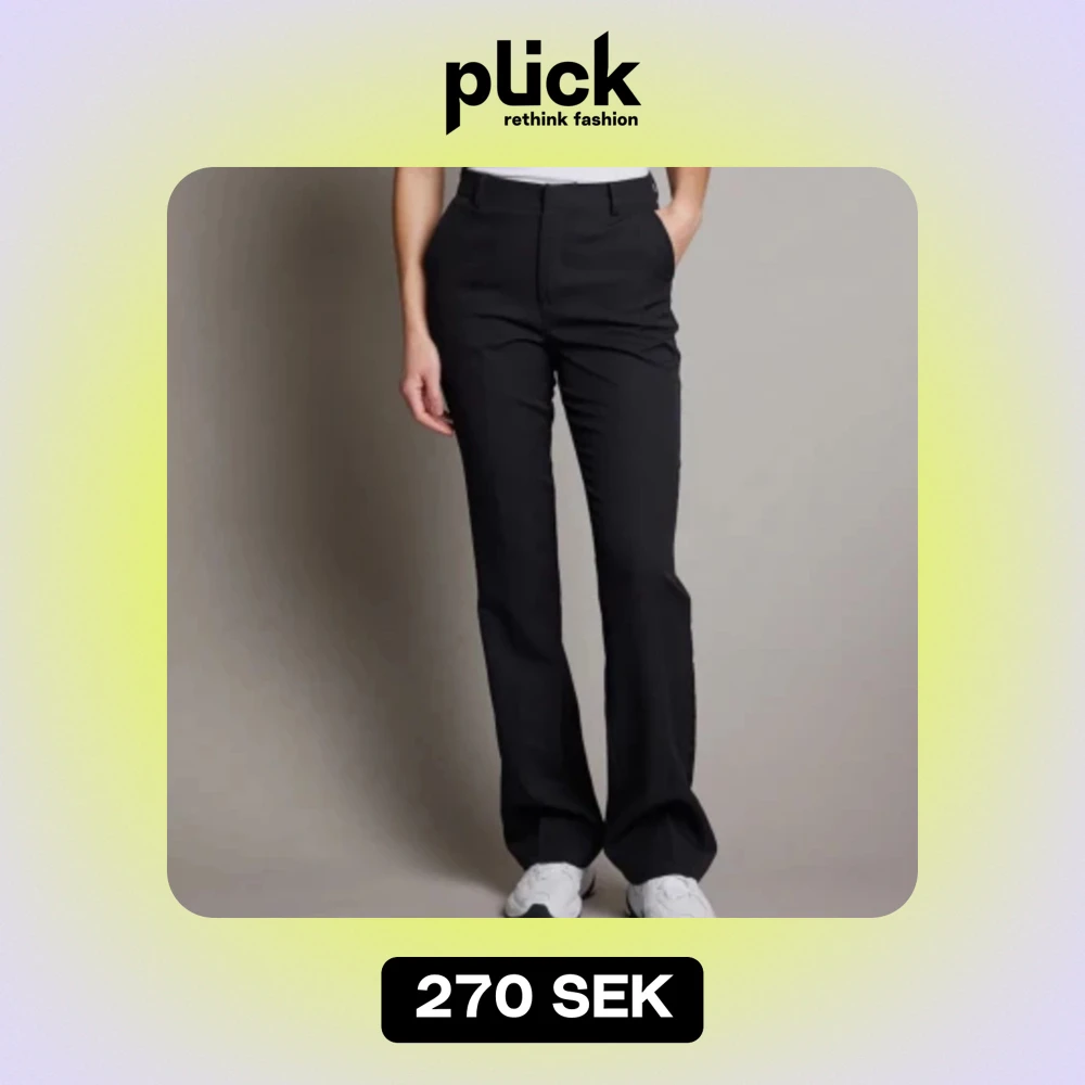 Säljer ett par stilrena svarta Vilma kostymbyxor. Är osäker på om dem är låg eller högmidjadje då dem inte ser högmidjade ut på. Byxorna är i ett bekvämt material. Dem är köpta på bikbok. Använt 2 gånger bara, inga slitage. Kommer inte till användning hos mig. Storlek 36