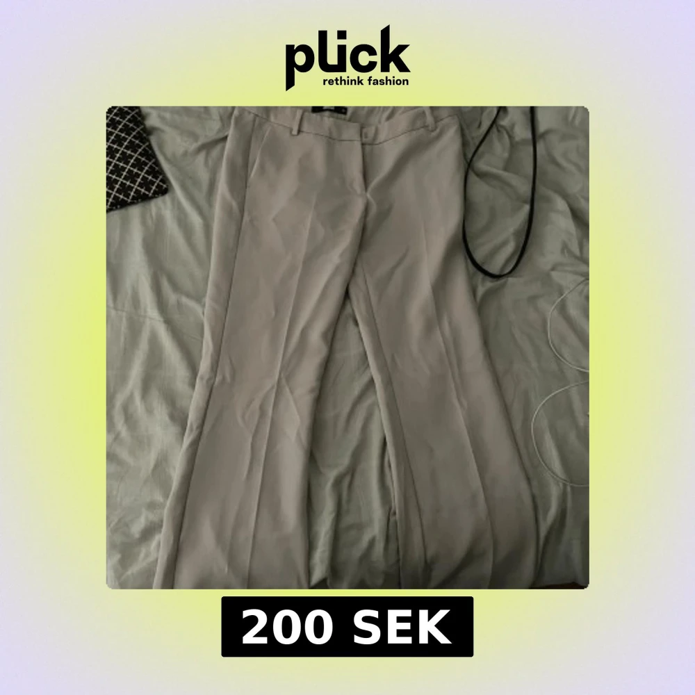 Snygga beiga kostymbyxor från BikBok i klassisk rak modell. Byxorna har pressveck, hällor för bälte och diskreta fickor bak. Perfekta för en clean och stilren look. Materialet känns mjukt och har en lätt stretch.