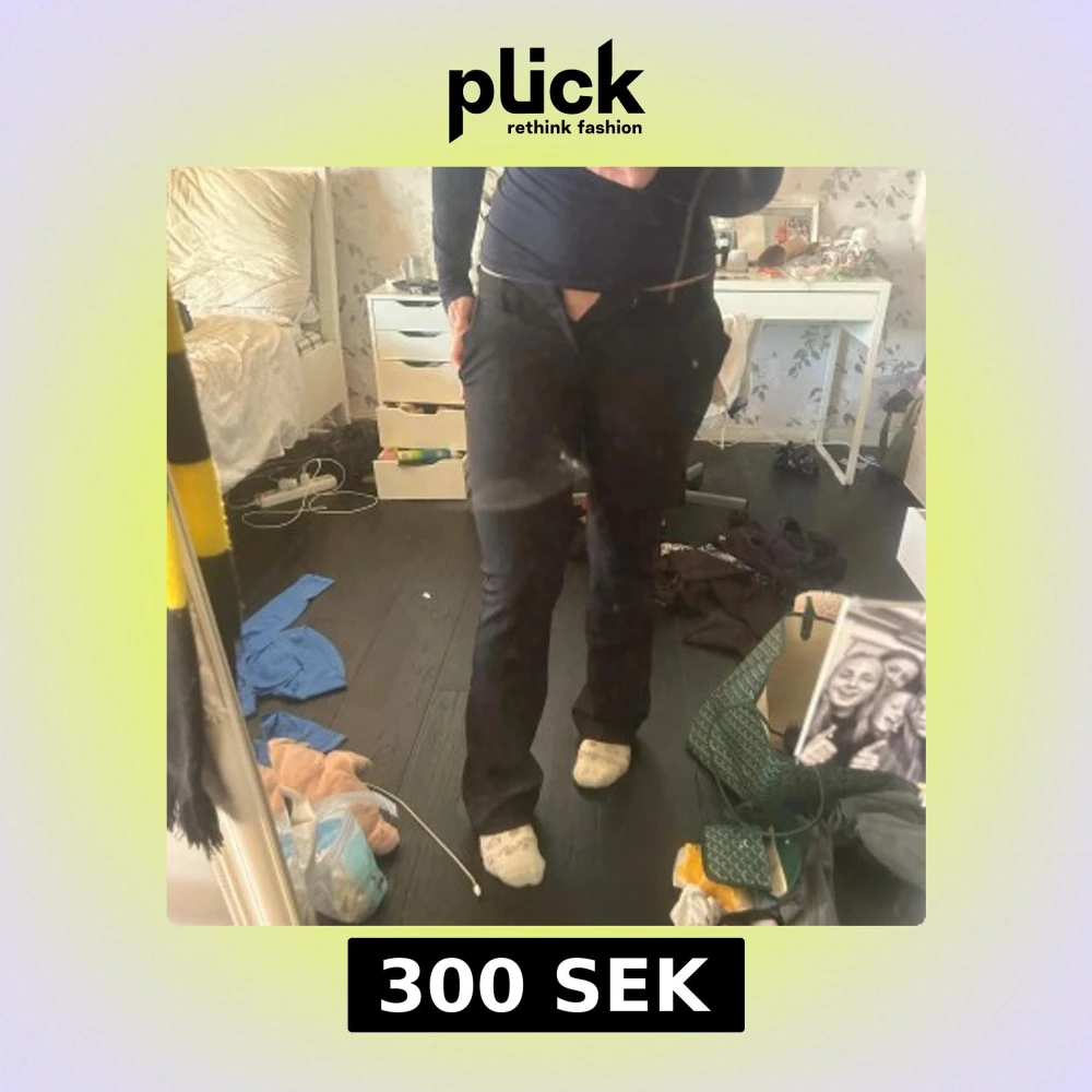 Svarta kostymbyxor från bikbok med bootcut-snitt och normal passform. Byxorna har klassiska fickor fram, bälteshällor och stängs med dragkedja och knapp. Materialet är mjukt och har en lätt stretch för skön känsla. Perfekta till en snygg topp eller hoodie.