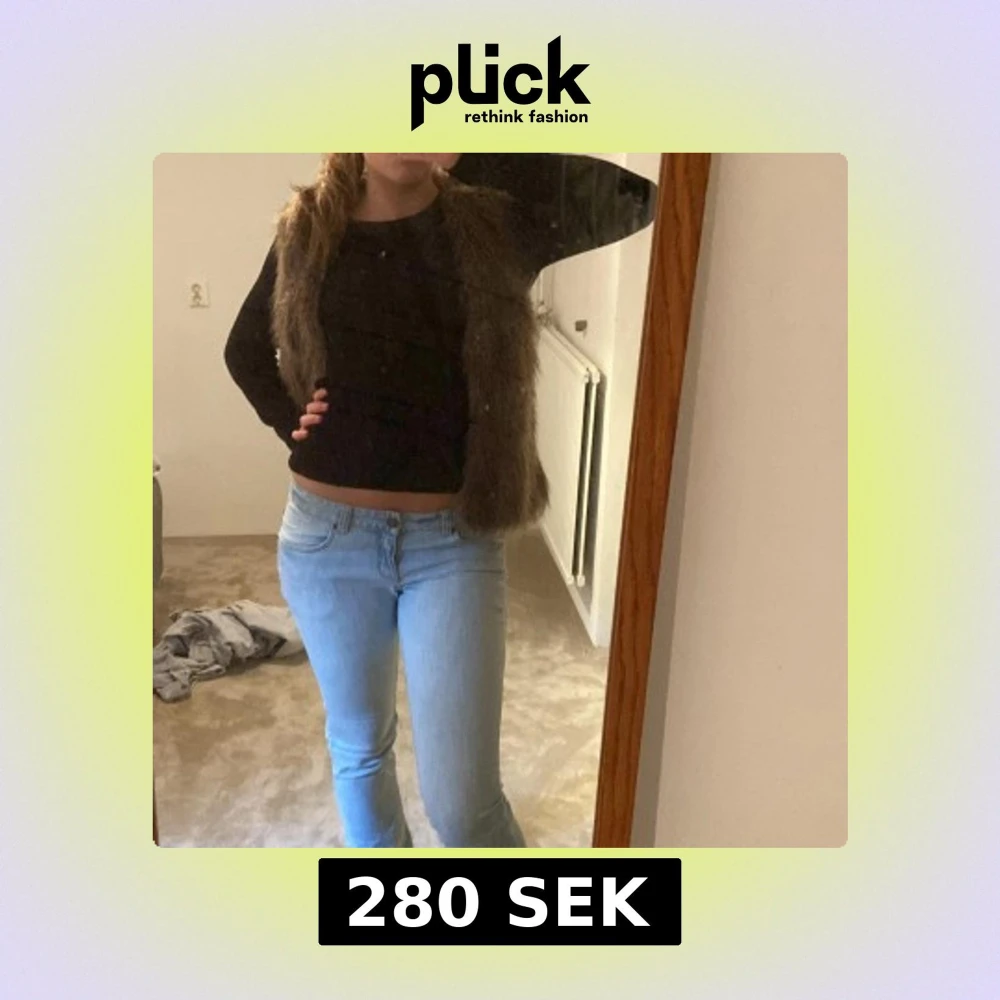 Jeansen är köpta 2000 (min mammas) i superskick och lågmidjade. Om nån vill köpa västen går de med bra 👍 (midjemått 42cm och innerbenslängden 88cm)
