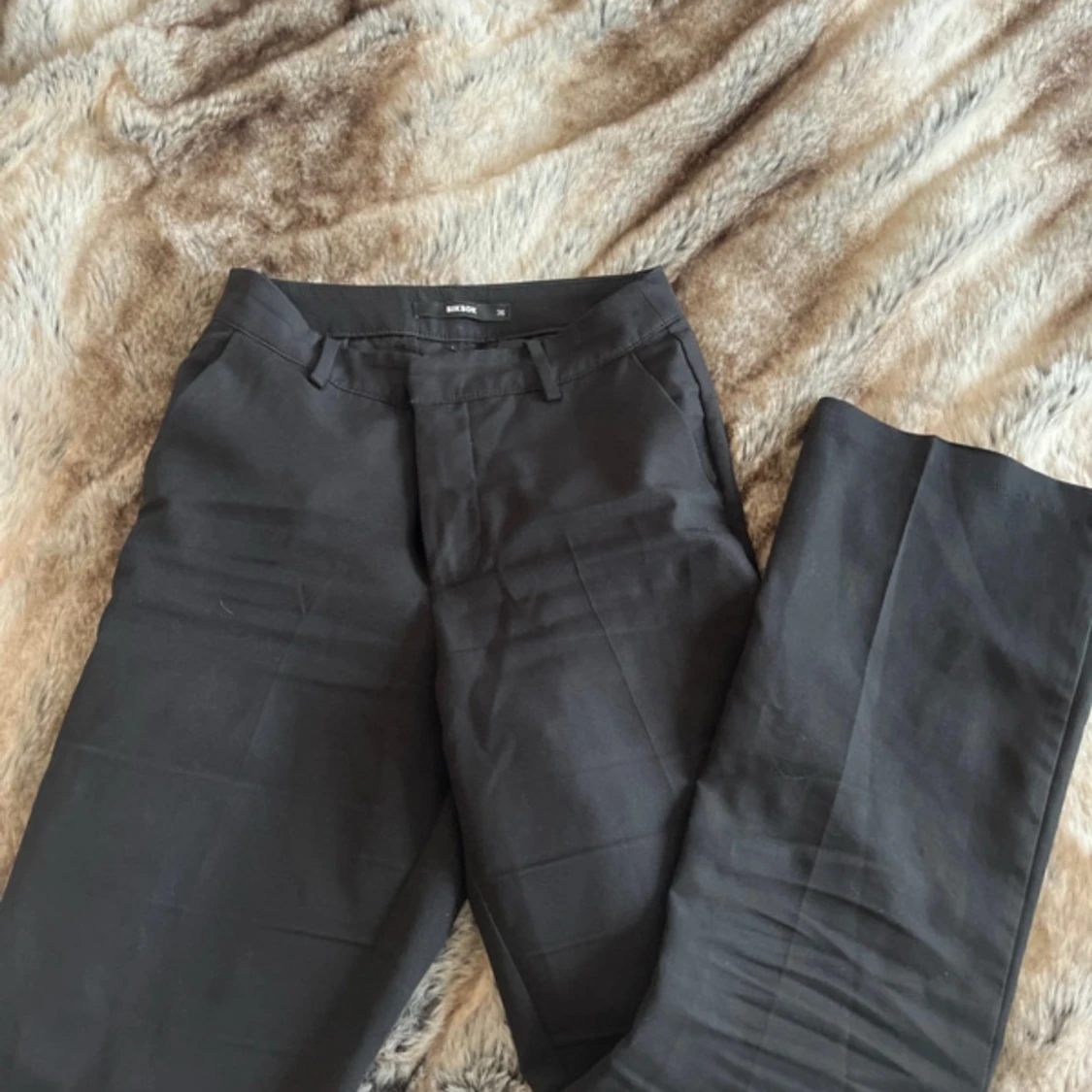 Super fina och sköna kostymbyxor från bik bok är i storlek 36/S, dom är lite skrynkliga på grund av att de har legat i gaderoben men det försvinner finns en liten tråd som sticker ut på höger ben men är inget som syns eller som man tänker på