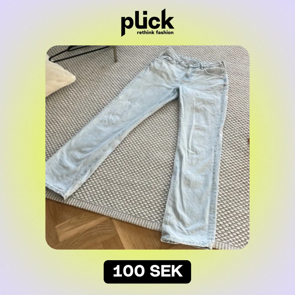 Lågmidjade jeans i en ljus tvätt. Går över skorna och är lite utsvängda. Från bikbok, vill få sålt så snabbt som möjligt!
