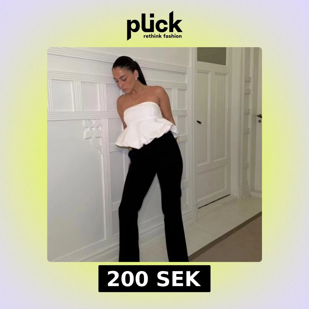 Snygga svarta kostymbyxor som är low waist och i st 38 dem har inga defekter vad jag kan se. Kontakta om du vill ha fler bilder eller har några frågor