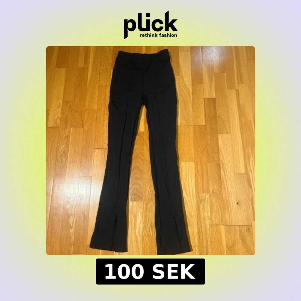 Svarta bootcut byxor från BikBok i storlek XS. Byxorna är högmidjade med slits nertill och har en stilren, figurnära passform. Perfekta för dig som gillar en clean look med lite extra edge. Materialet är stretchigt och bekvämt.