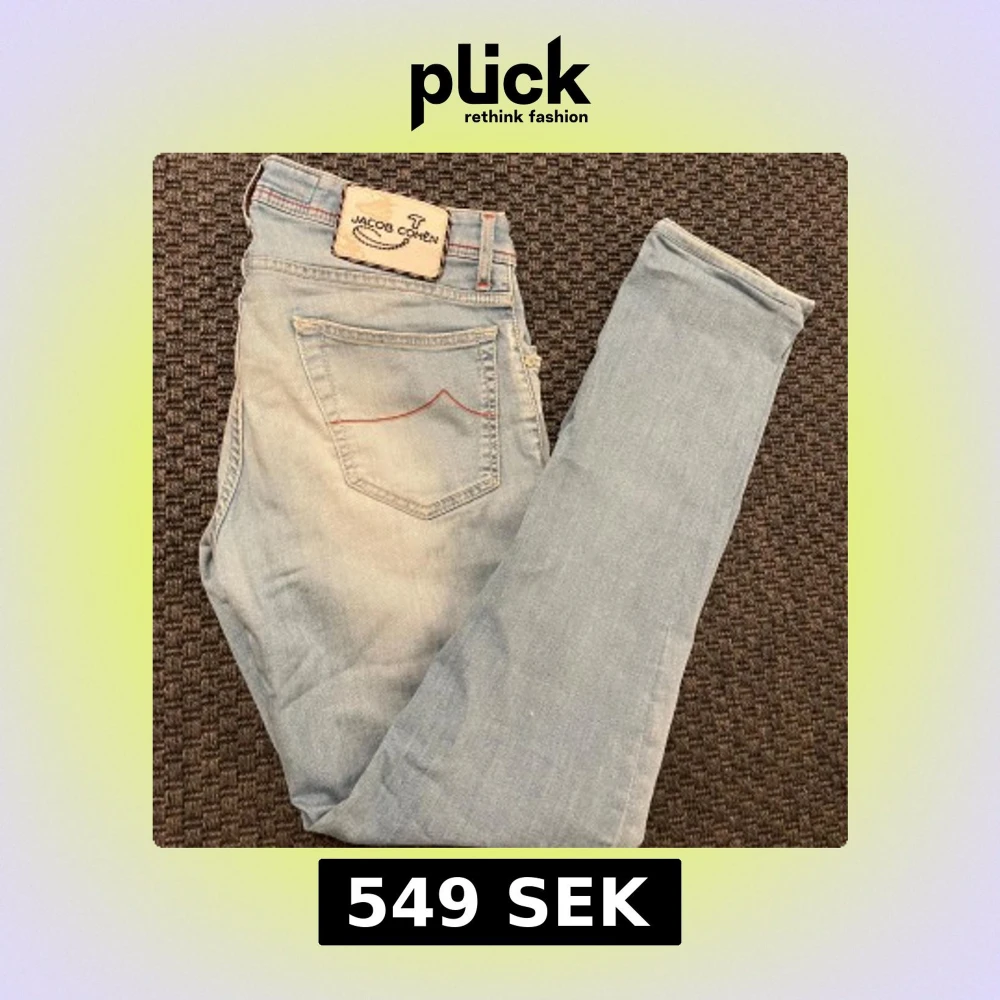 Snygga ljusblå jeans från Jacob Cohen med röda sömmar och klassisk femficksdesign. Jeansen har en knappgylf och en stilren look som passar perfekt för en avslappnad stil. Märkeslogga på baksidan av midjan. Populärast slim fit modellen 622/ Nick! Nypris ca 5500kr 🤩 Riktigt unika och säljs inte längre 🤝 Skriv vid funderingar 😁