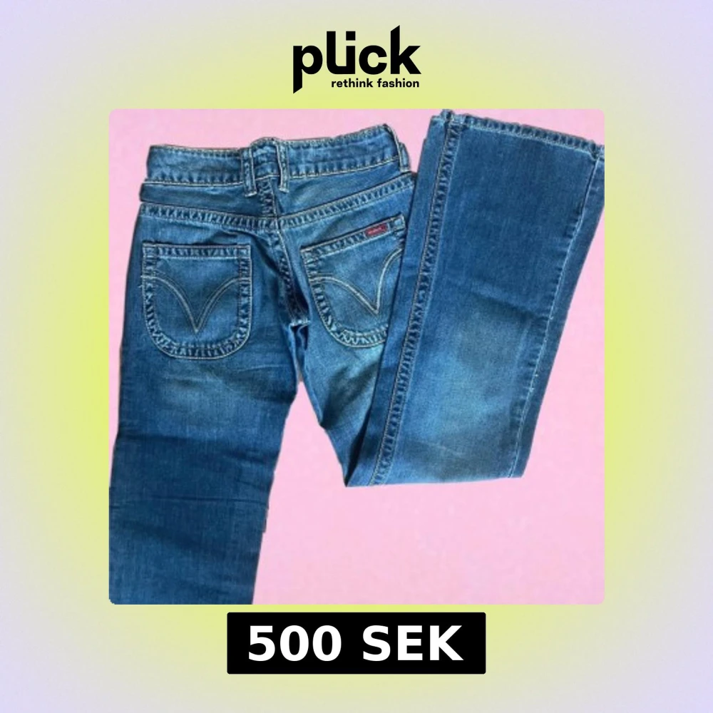 Säljer ett par klassiska blå bootcut jeans från Replay med snygga kontrastsömmar och bakfickor med dekorativa sömmar. Jeansen har normal passform och låg midja, perfekta till vardagsstilen.