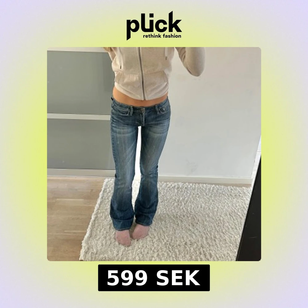 Snygga blå bootcut jeans med låg midja. Perfekta för en avslappnad stil. Klassisk design med fem fickor och knappgylf.
