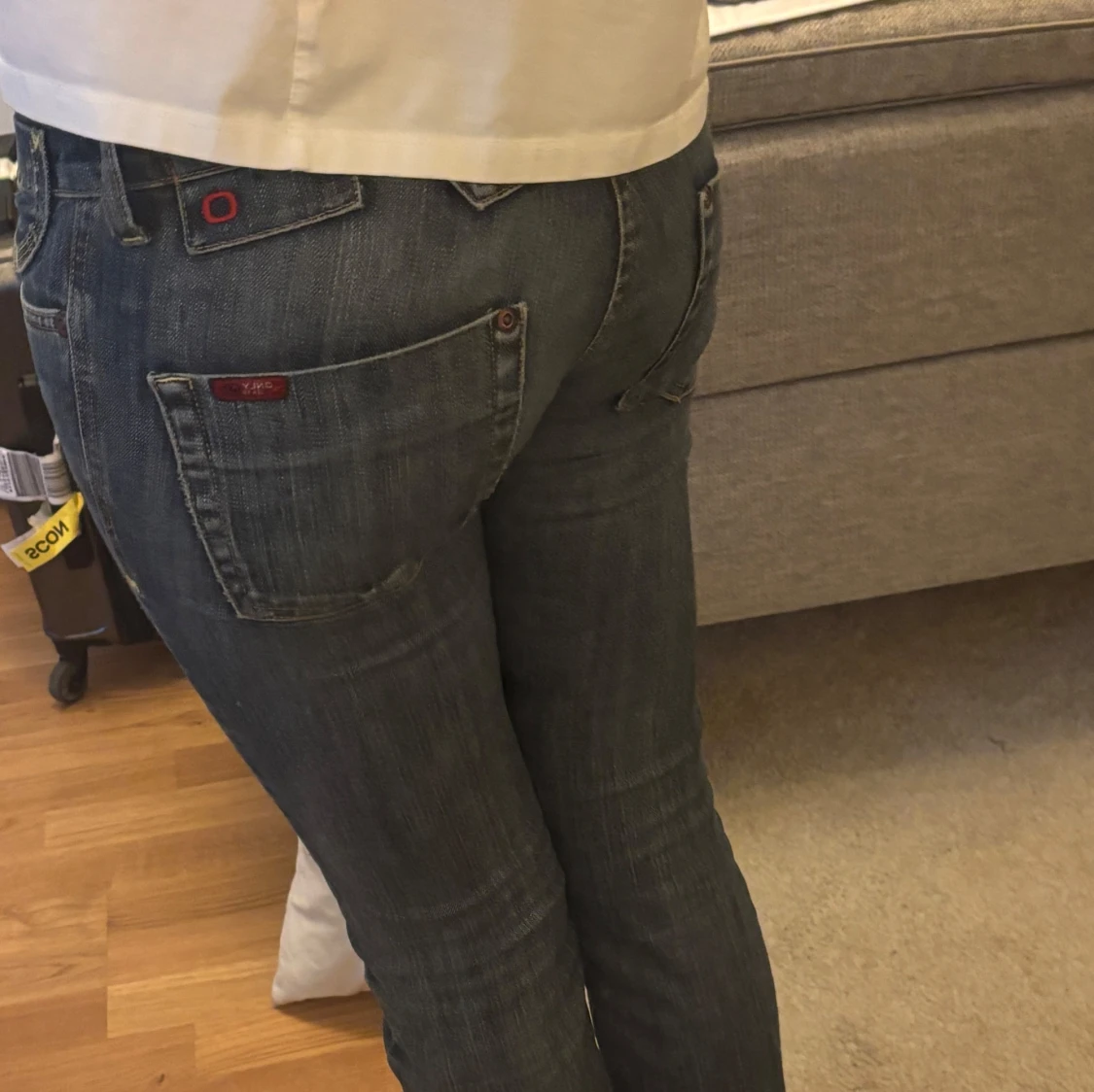 Så snygga men tyvärr för korta för mig🩷 Sprättade längst ner, bild finns. Midjemått: 36, Innerbenslängd: 80,5 (uppsprättade) 78 (inte uppsprättade)