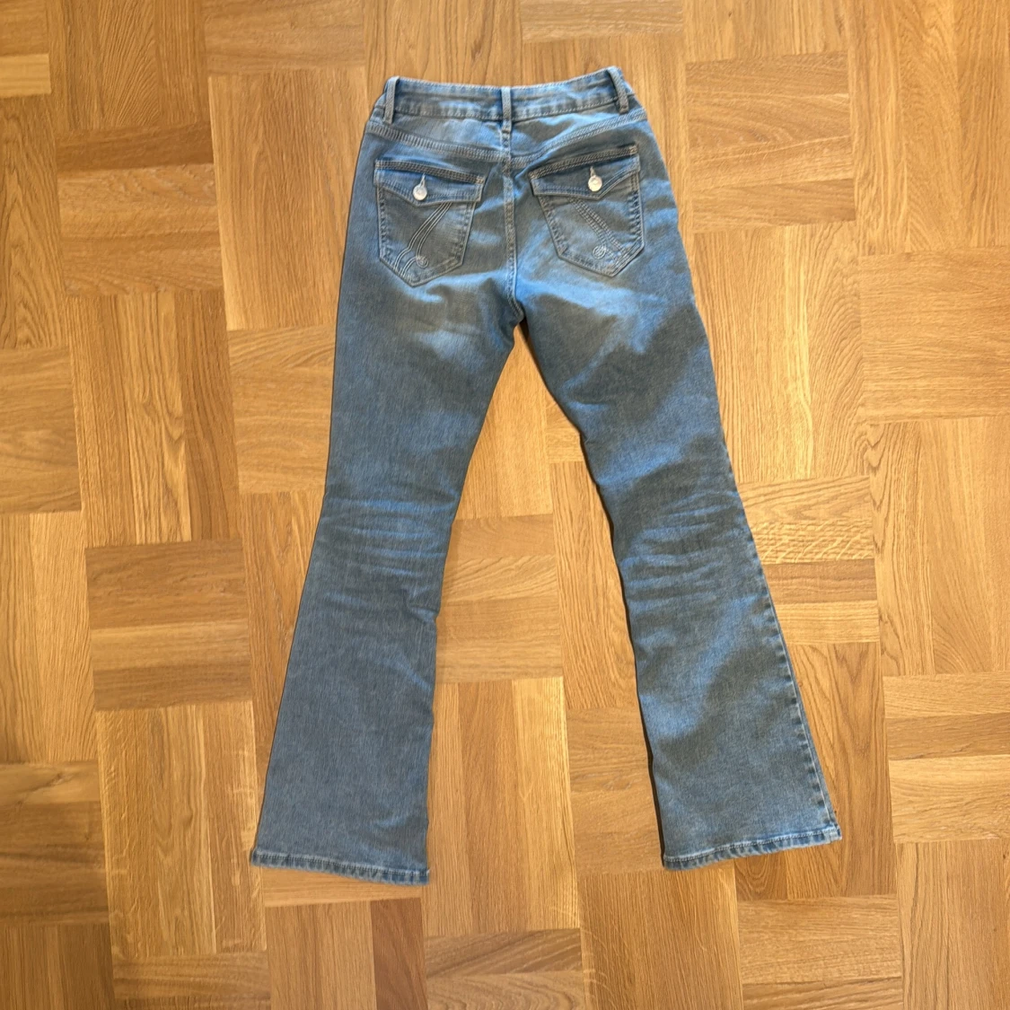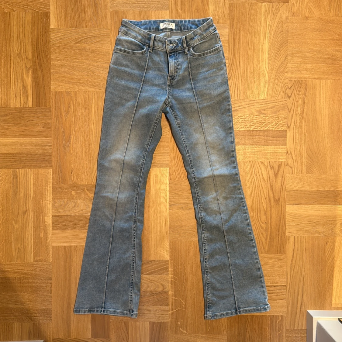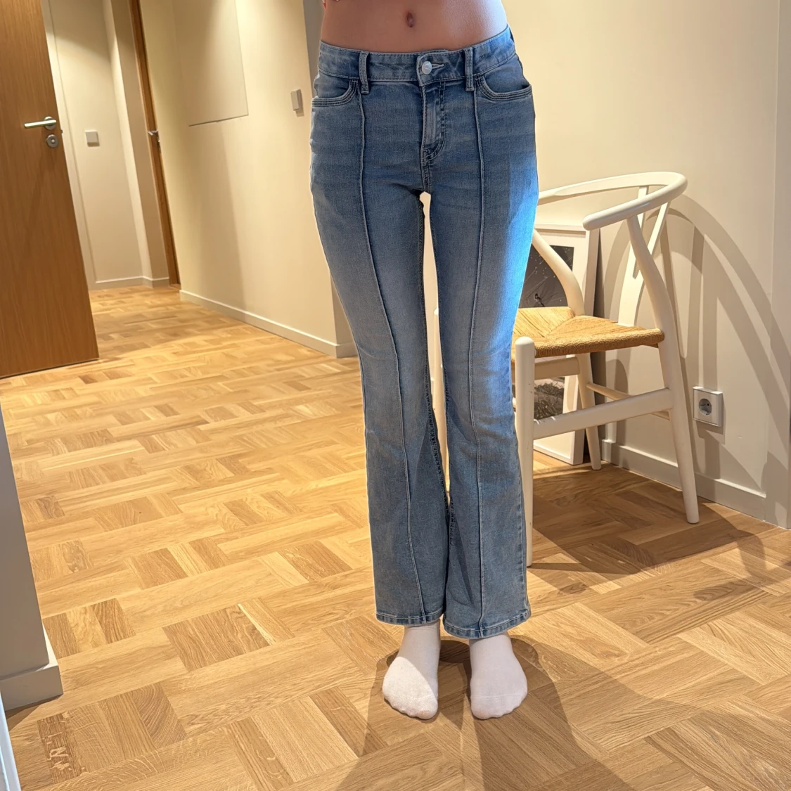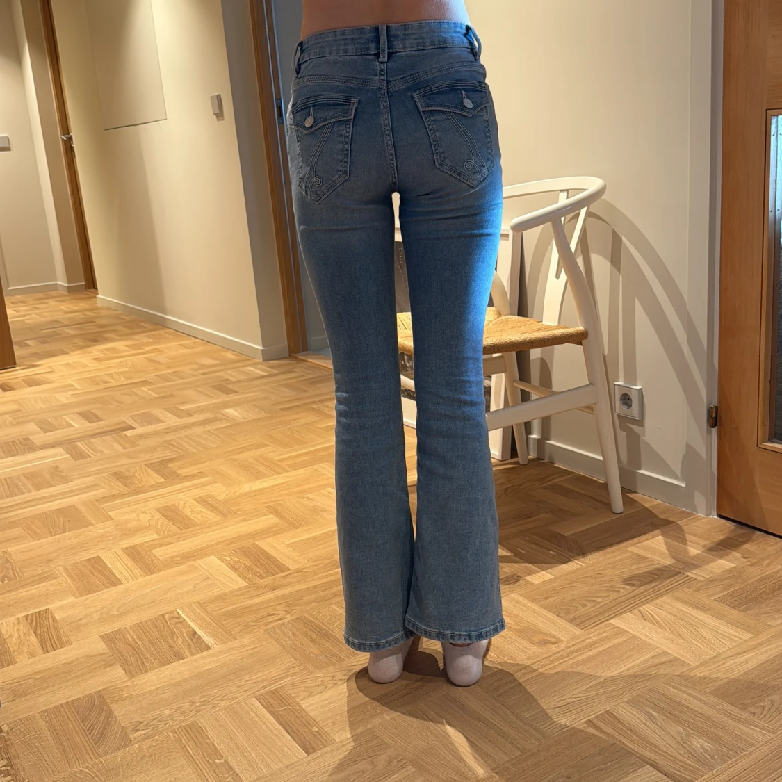 Snygga ljusblå jeans från Lindex modell Freja med bootcut-modell och markerad söm längs benen. Klassisk femficksdesign och knappstängning framtill. Jeansen har hög midja och är tillverkade i mjukt bomullsmaterial med lite stretch för extra komfort.