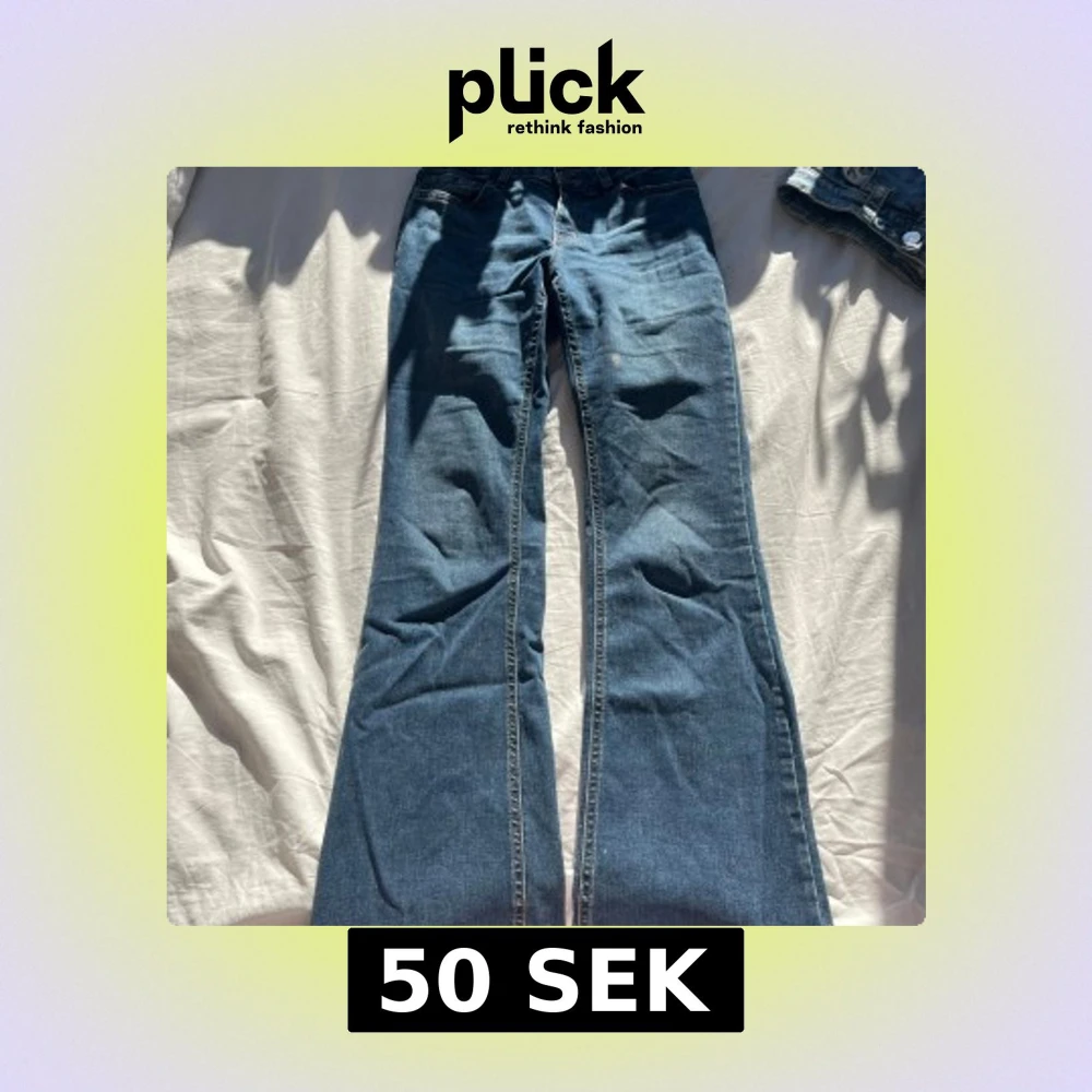 Snygga blå bootcut jeans från Lindex. De har en klassisk femficksdesign och är perfekta för en avslappnad stil. Jeansen har en bekväm passform och är tillverkade i ett slitstarkt denimtyg.