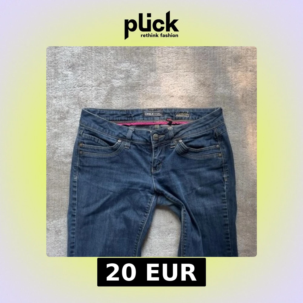Snygga blå jeans från ONLY med klassisk femficksdesign och bootcut-ben. Jeansen har normal passform, låg midja och är tillverkade i mjukt bomullsmaterial med lite stretch. Fina detaljer med nitar på bakfickorna och rosa insida i linningen.