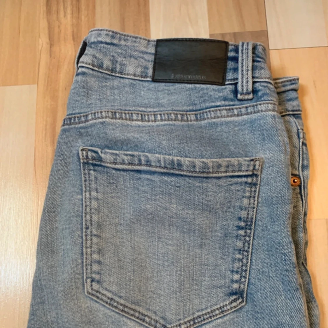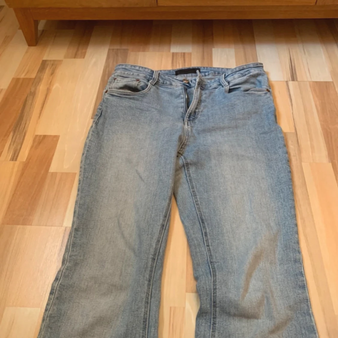 Snygga ljusblå jeans från Stradivarius i storlek 42. Använda men fint skick, passar bra i längd på mig som är 175cm lång.