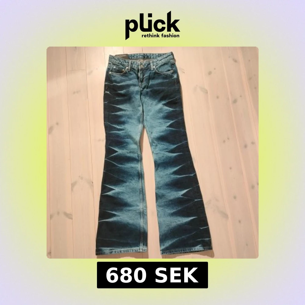 Snygga blå bootcut jeans från Weekday med ett unikt mönster. Helt nya med prislapp. Köpta från deras hemsida i storlek 26. Köpte för 700 kr men det var för stora. Sök upp på deras hemsida om du behöver mått. Pris går diskuteras vid snabb affär.
