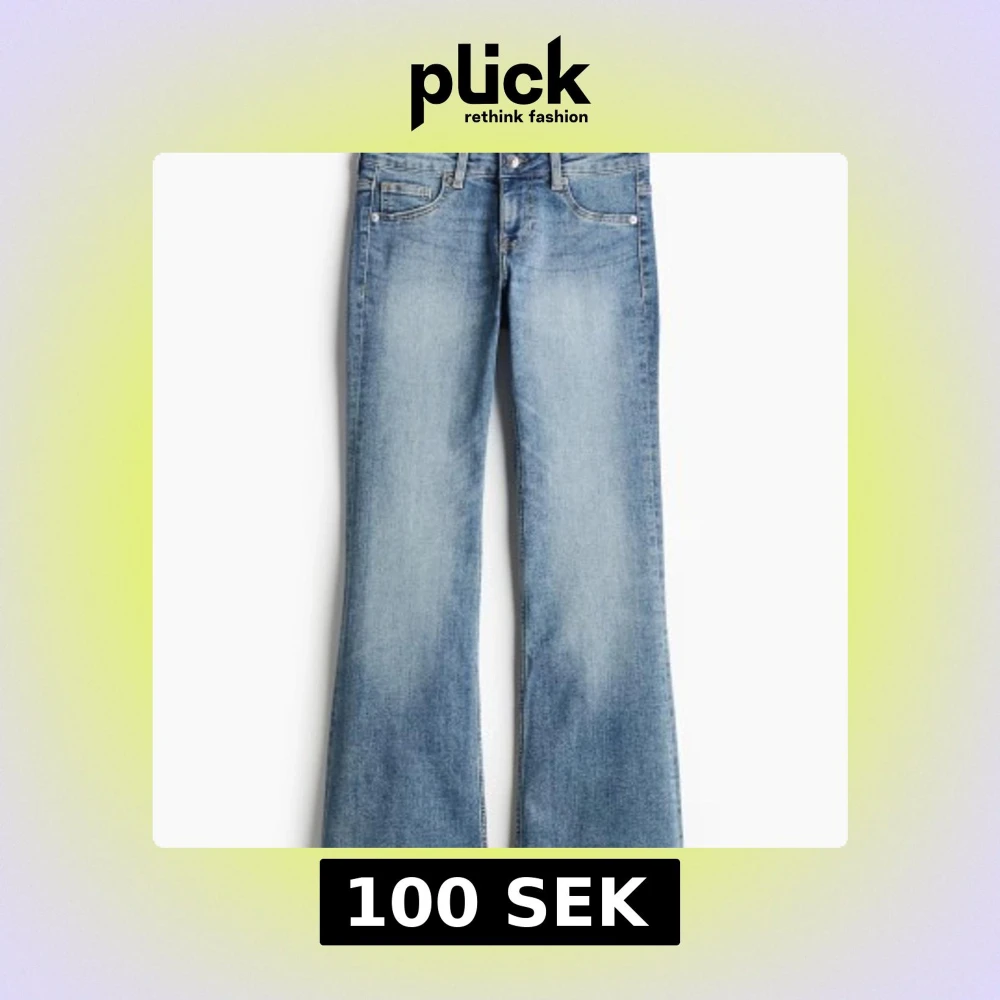 Snygga blå low waist bootcut jeans, dem har en liten fläck på ena benet men inget mat tänker på. Skriv för fler bildern annars
