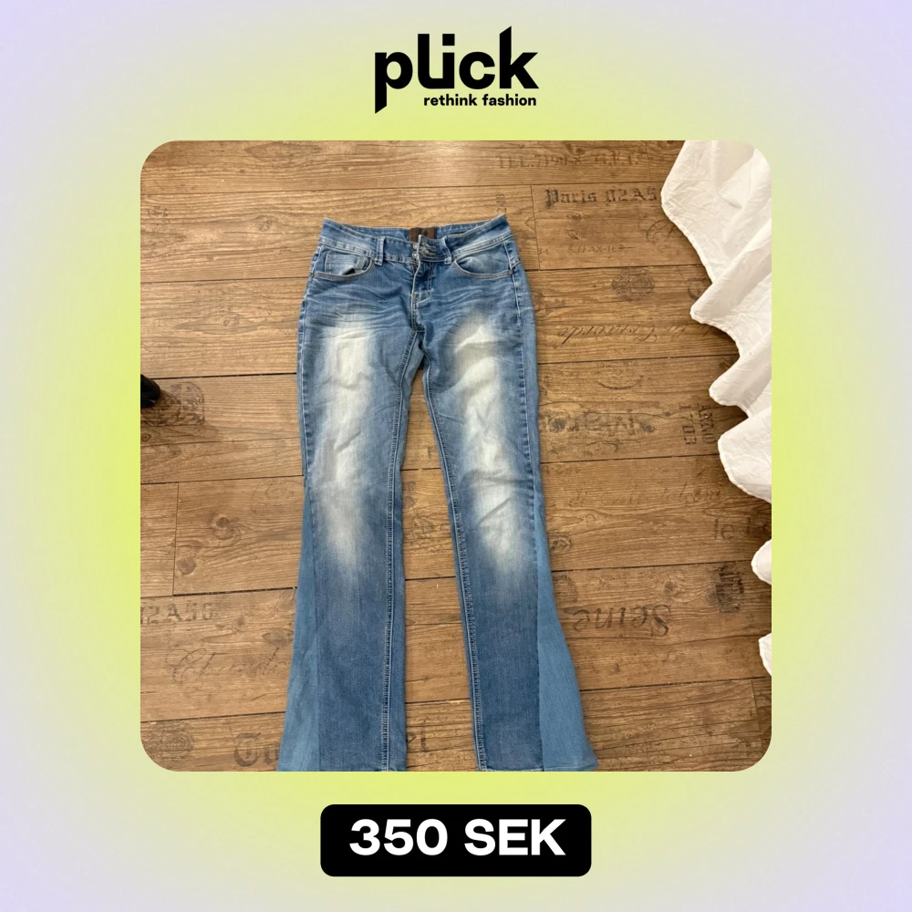 Säljer ett par snygga blå bootcut jeans i bra skick. Dom är utsydda där nere så dom är bootcut och lowwaist.