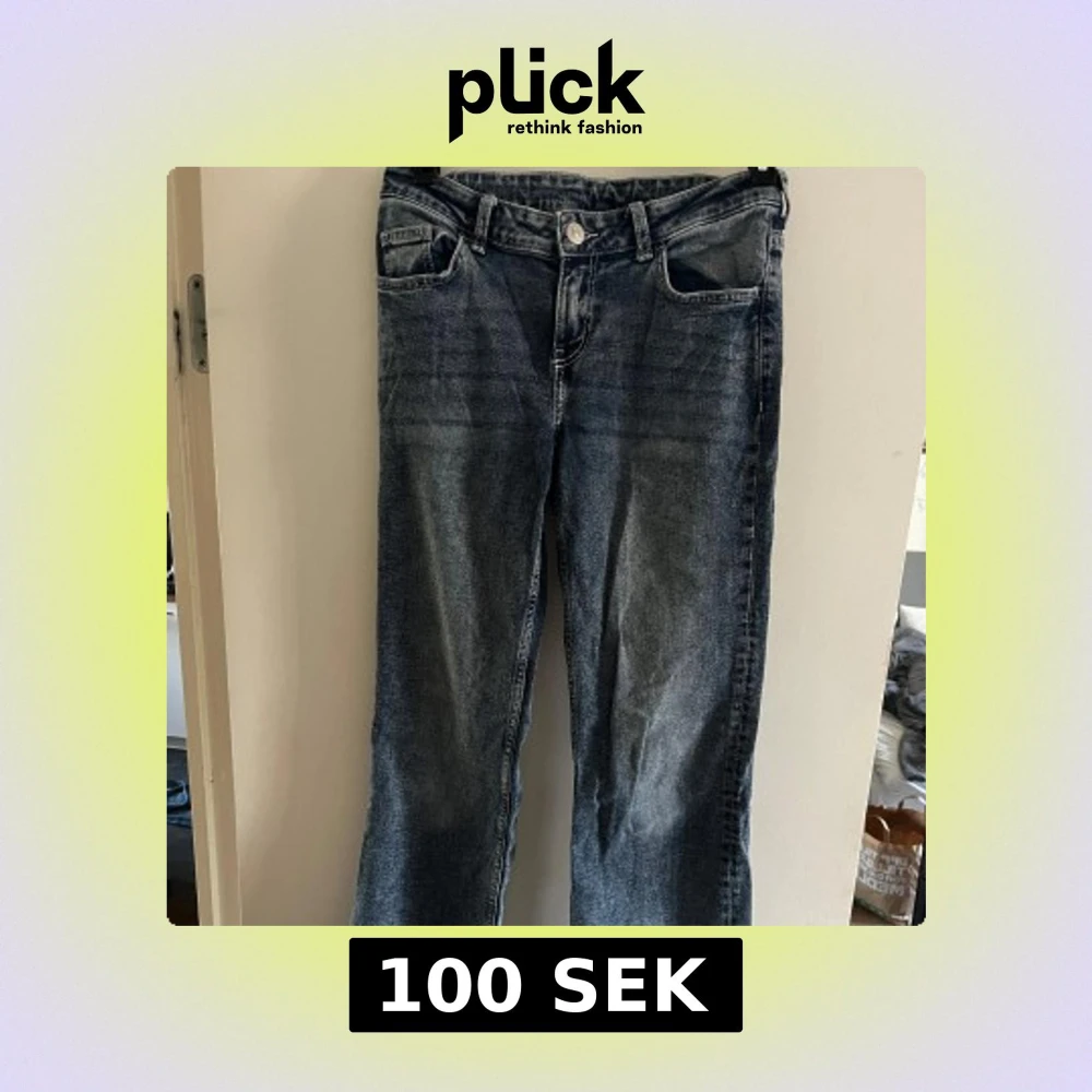 Säljer ett par blå jeans i bootcut stil från HM. Storlek 38, passar 36.