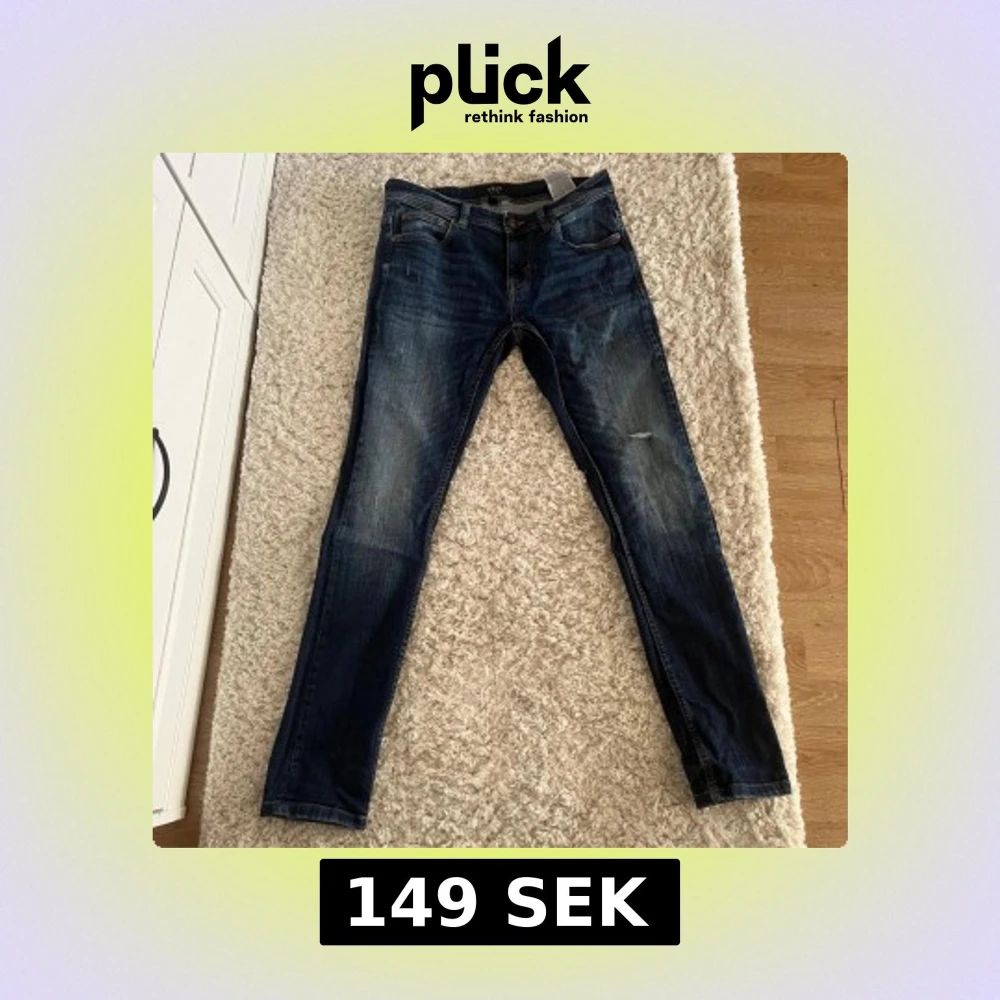 Säljer dessa jeans från smog som inte kommer t användning längre || riktigt sköna slitningar och generellt ett par riktigt fina jeans || nypris runt 1000 || storlek 30/32 sitter som 29/32 typ|| skick är 8/10 använda men mkt bra skick || frågor?