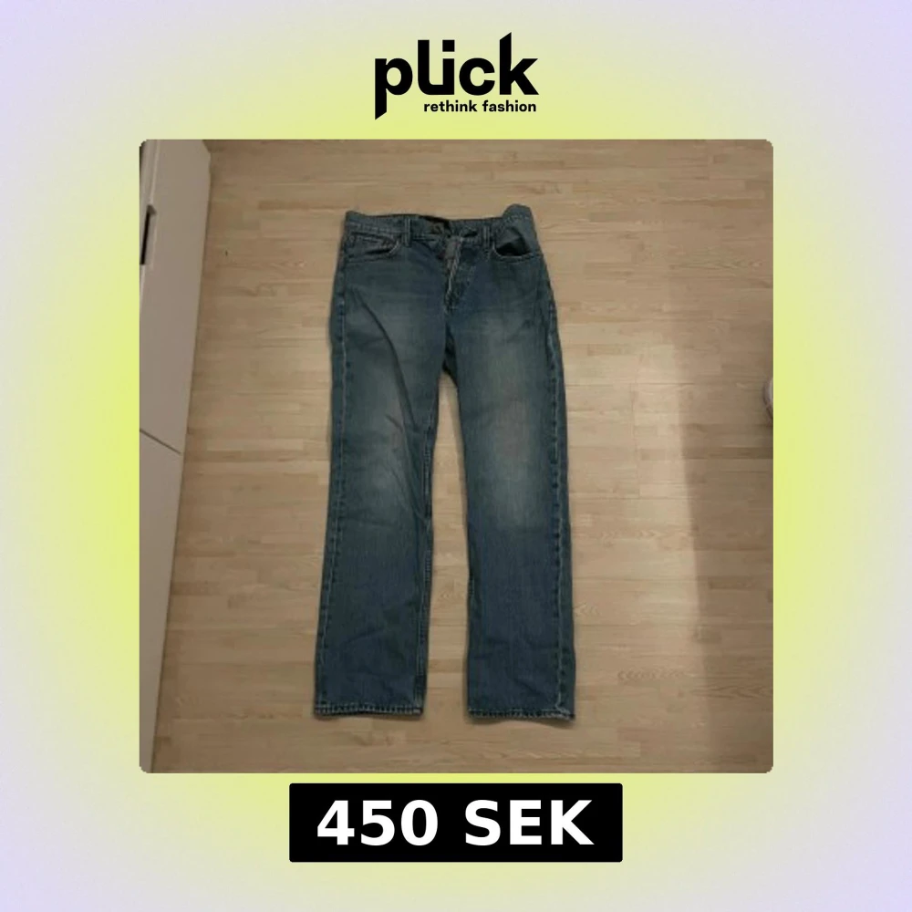 Säljer ett par klassiska blå jeans från Brixton med relaxed fit. De har en rak passform och är tillverkade i denim. Perfekta för en avslappnad stil.