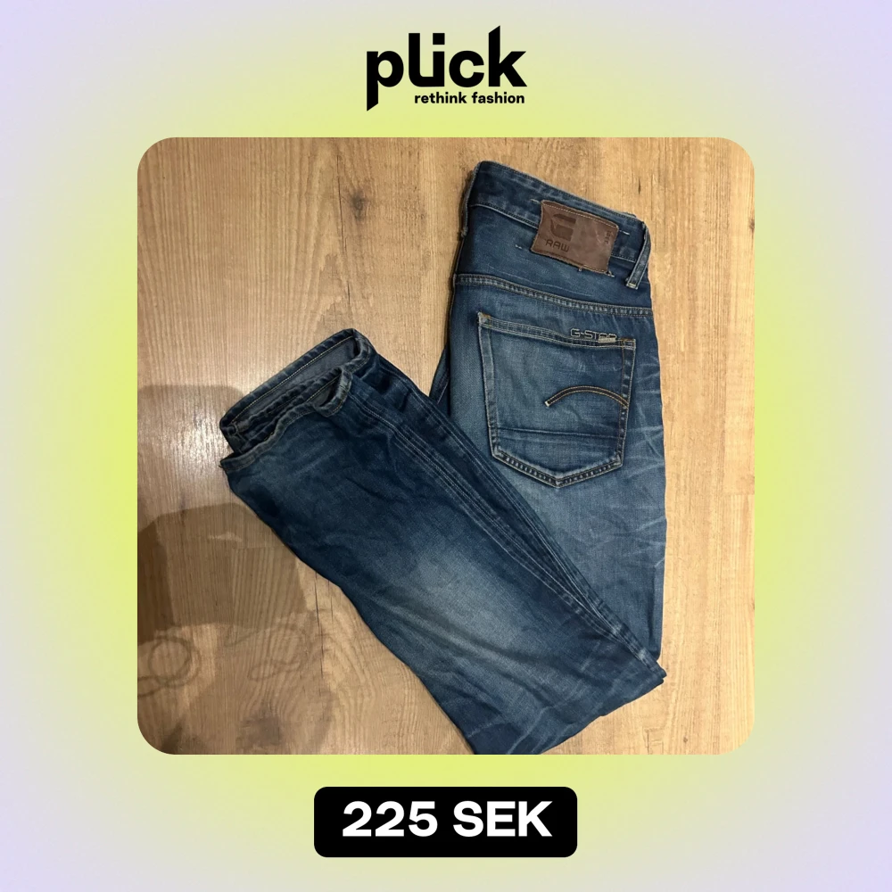 Säljer ett par snygga blå jeans från G-Star RAW med snygga slitningar. Litet hål vid skrevet men går enkelt att sy ihop därav priset