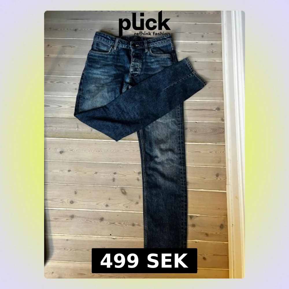 Säljer ett par klassiska blå jeans från Neuw Stockholm med snygg tvätt och raka ben. Jeansen har fem fickor, knappgylf och detaljerade sömmar. Materialet är slitstarkt denim i bomull och passformen är normal. Perfekt för dig som gillar stilrena och tidlösa jeans. Skick: 8/10. Nypris: 1499kr