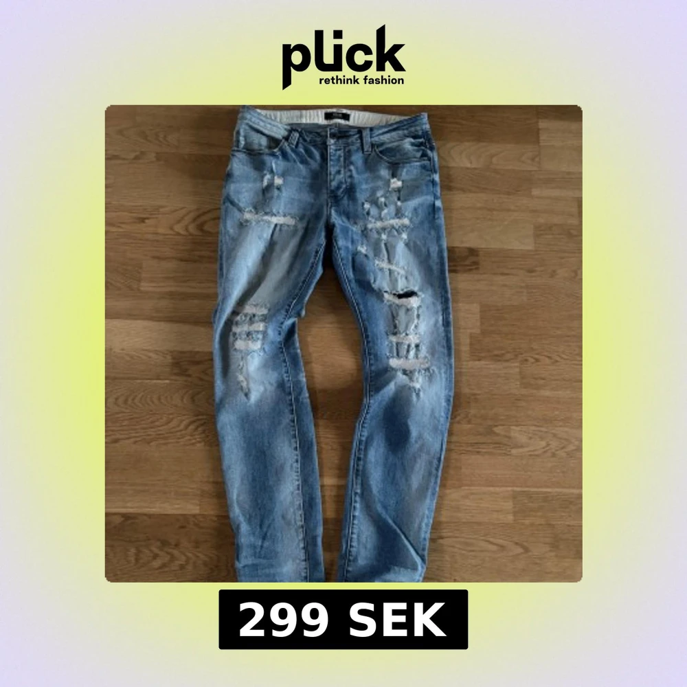 Snygga blå jeans från Neuw med en skinny passform. De har en cool slitningseffekt framtill och klassisk femficksdesign. Perfekta för en avslappnad stil med en modern twist. Modell: Skinny iggy. Storlek: W32