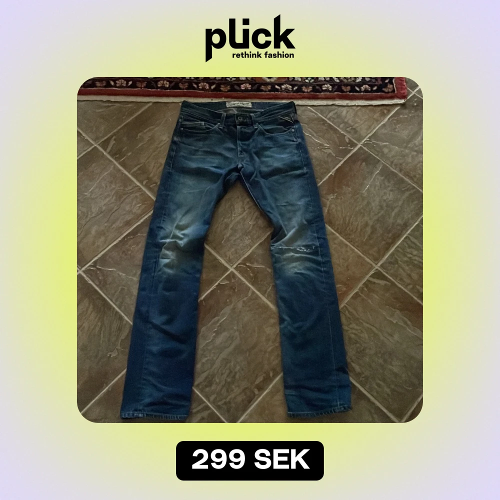 Säljer ett par snygga blå jeans från Replay i bra skick med en fin wash! De har en klassisk straight fit och är perfekta för vardagsbruk. Jeansen har en cool tvättad look med slitningar som ger dem en avslappnad stil. Perfekta för alla årstider! Storlek W32 L36. Pris kan diskuteras!