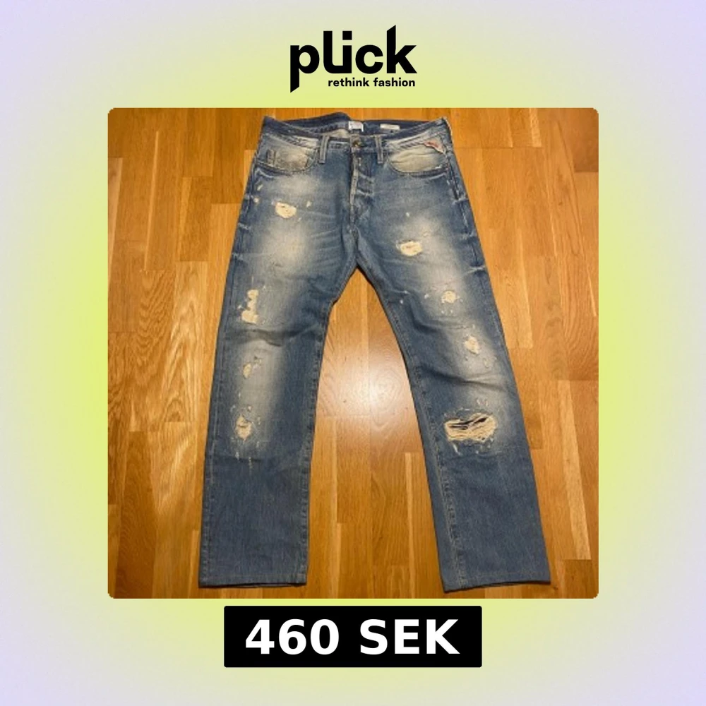 Snygga blå jeans från Replay med en galen tvätt. Perfekt för en grisch look. Dom är uppsydda till längd 31 och passar 30 i midjan. Priset är inte hugget i sten