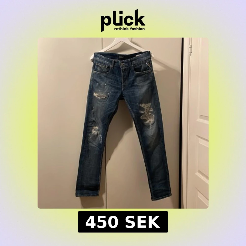 Snygga blå jeans från Replay med slitna detaljer. De har en slim passform och är perfekta för en avslappnad stil.