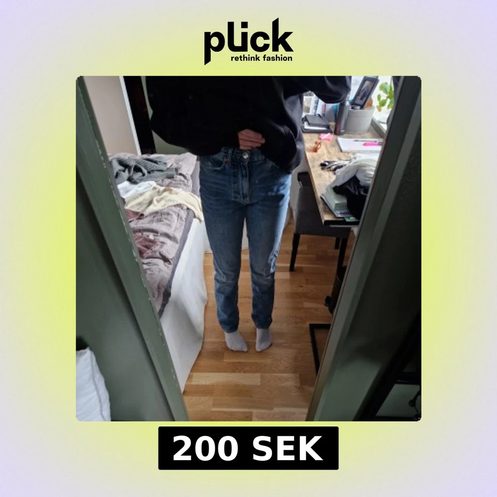 Säljer ett par klassiska blå jeans från gina tricot i storlek 34. Jeansen har hög midja, raka ben och normal passform. Tillverkade i slitstarkt bomullstyg med snygga kontrastsömmar. Perfekta för dig som gillar en tidlös och enkel look. Mycket bra skick💕