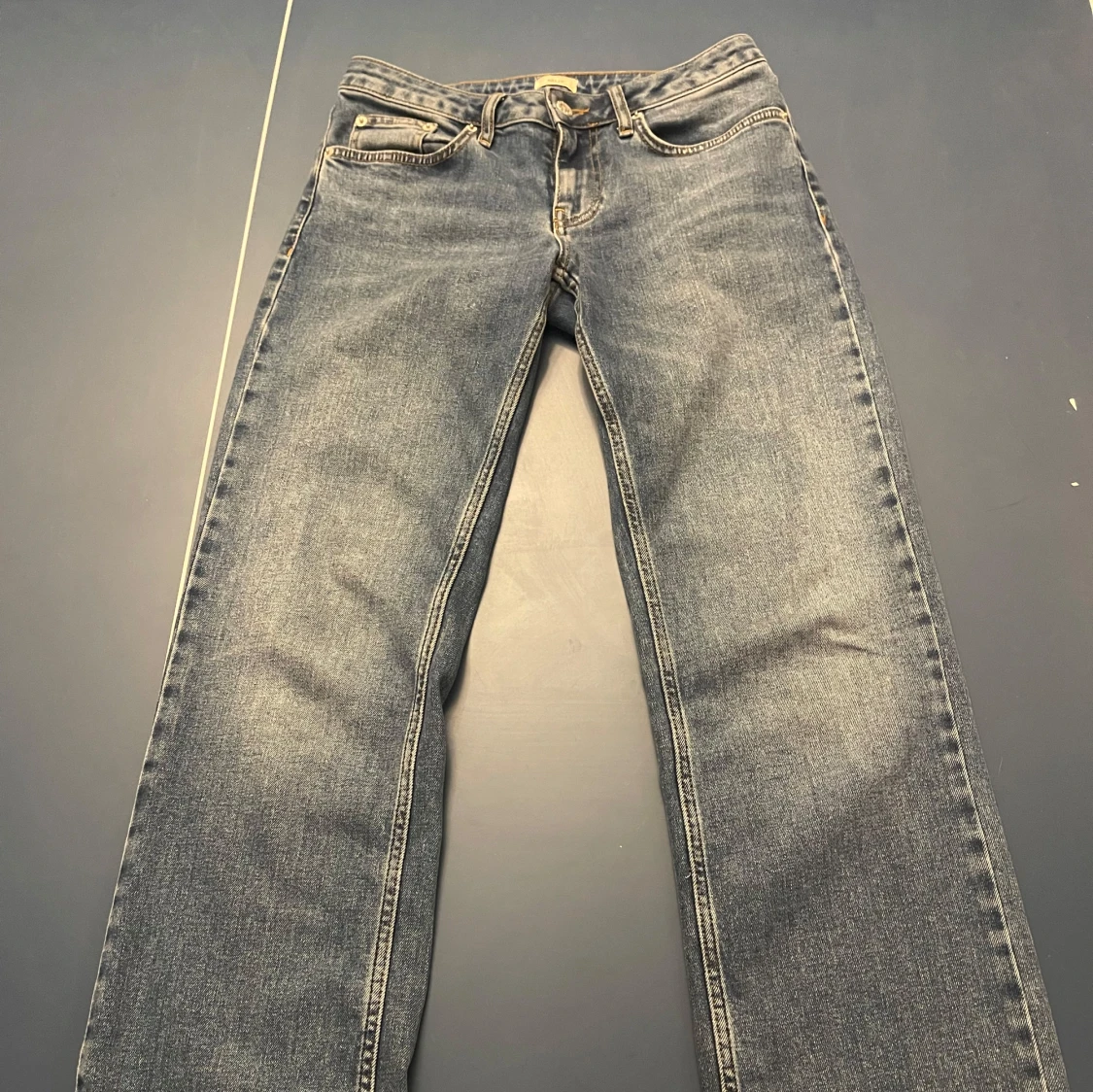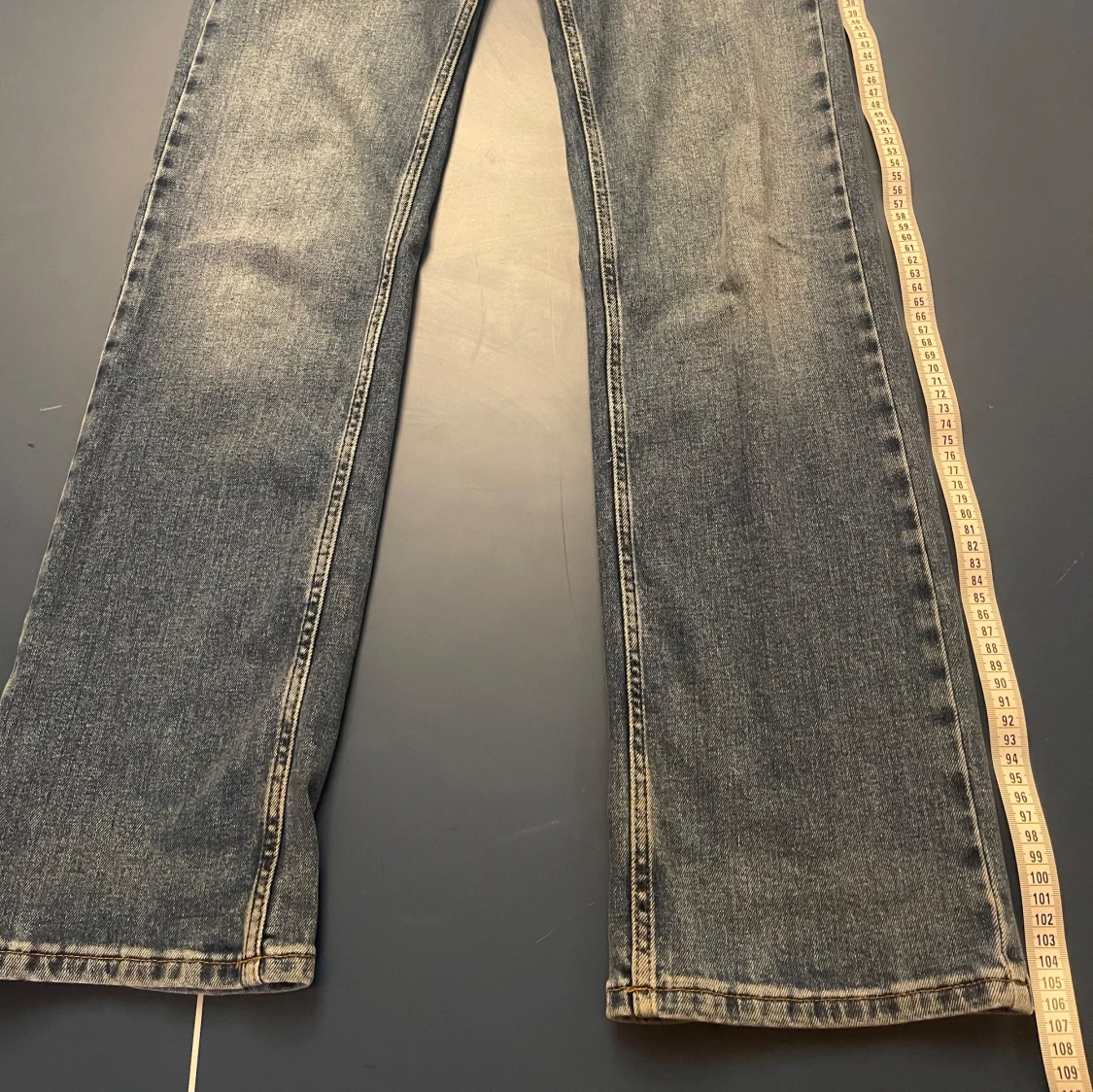 Klassiska blå lågmidjade jeans med en straight passform och femficksdesign. Byxorna har en knapp och dragkedja framtill. Perfekta för en avslappnad stil. Köptes från Nelly och säljer då de inte används. Använt ett fåtal gånger💞hör av dig vid mått eller andra frågor🥰