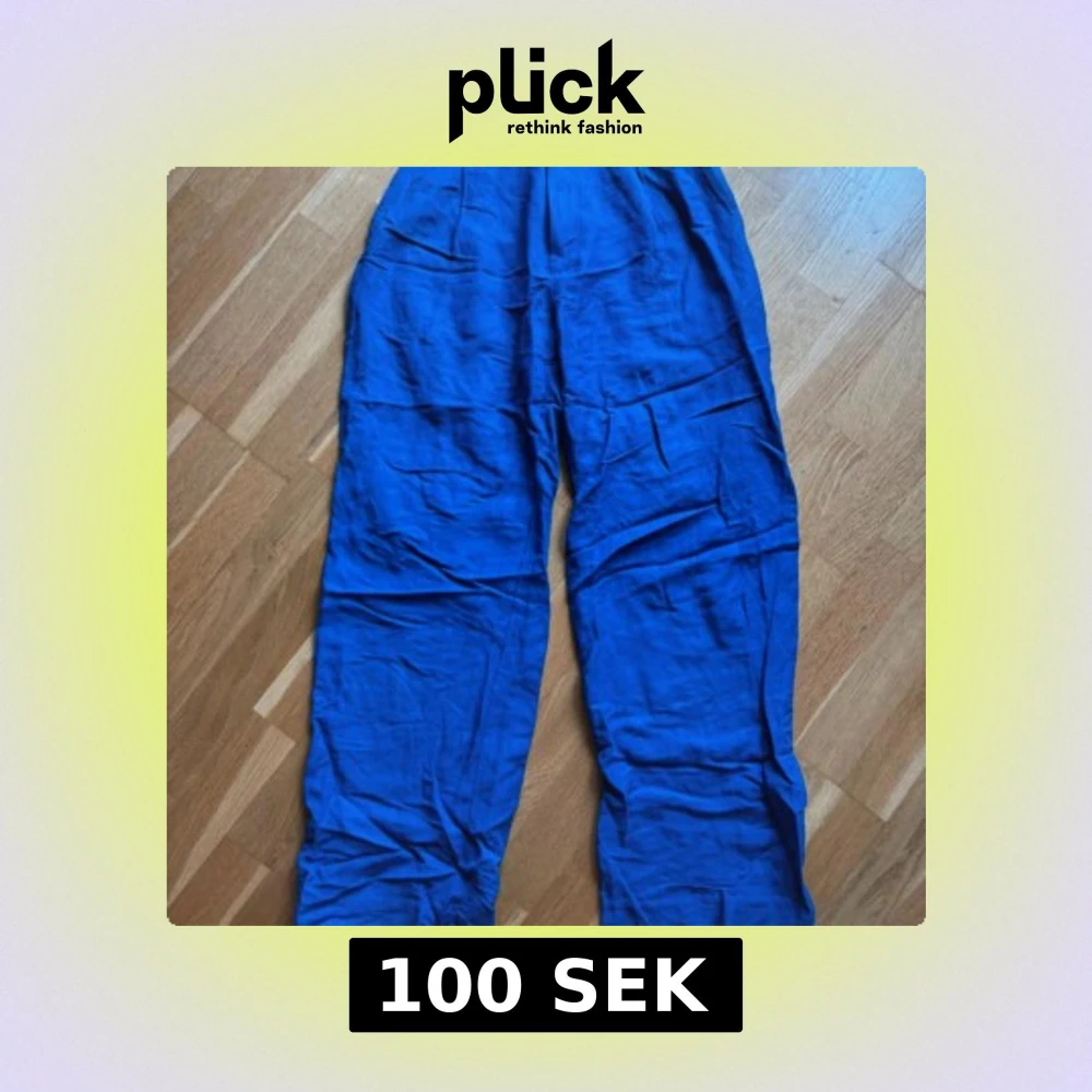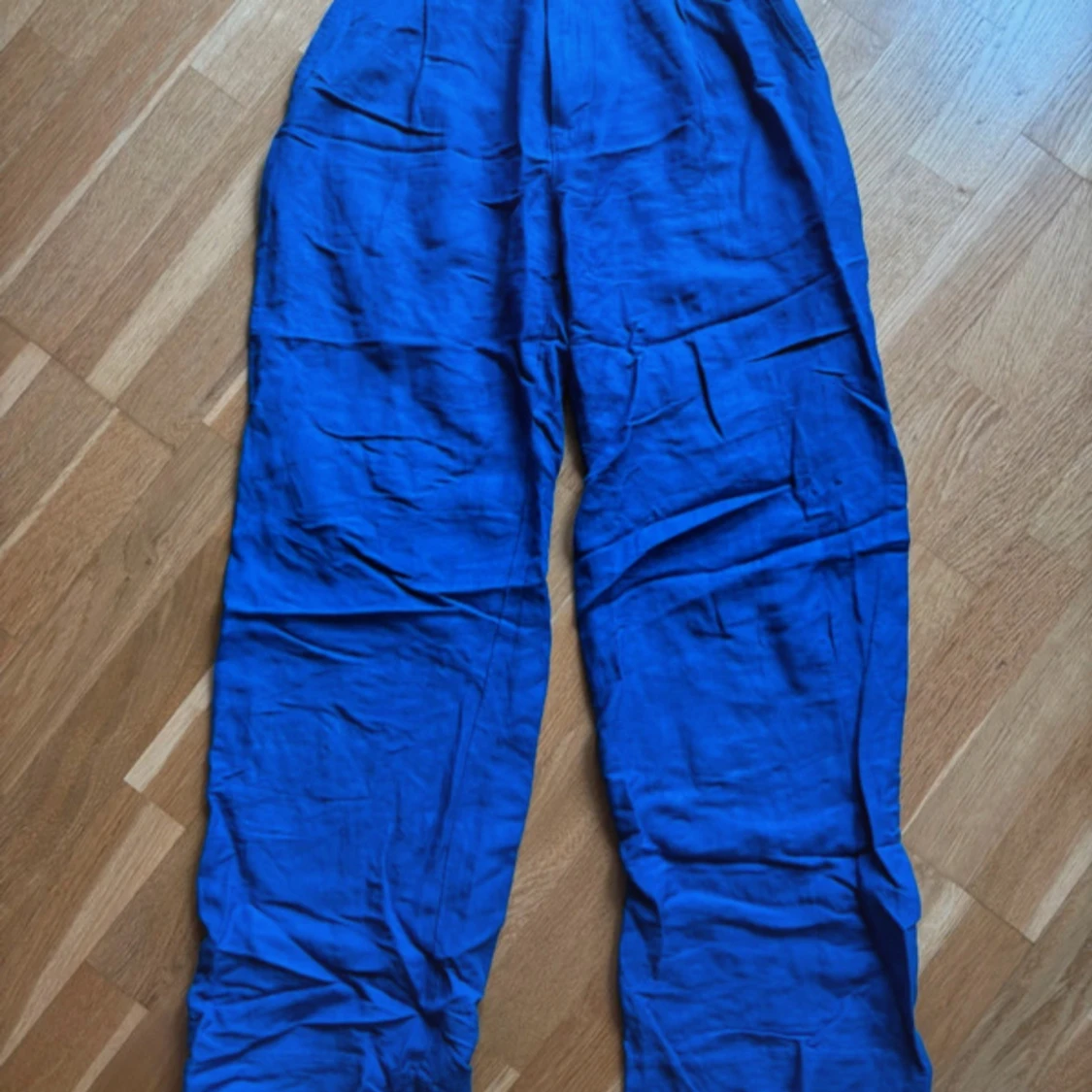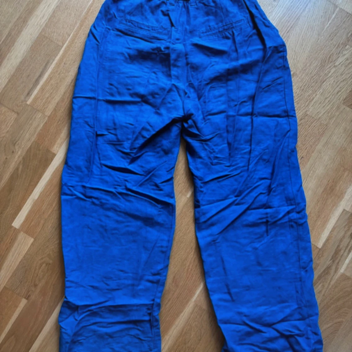 Snygga blå linnebyxor från Lindex i storlek 34. Byxorna har avslappnad passform, resår i midjan och raka ben. Perfekta för varma dagar när du vill ha något luftigt och bekvämt. Färgen är riktigt klarblå och materialet är mjukt linne.