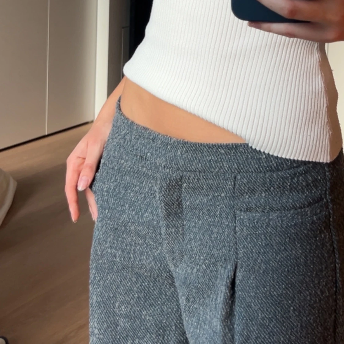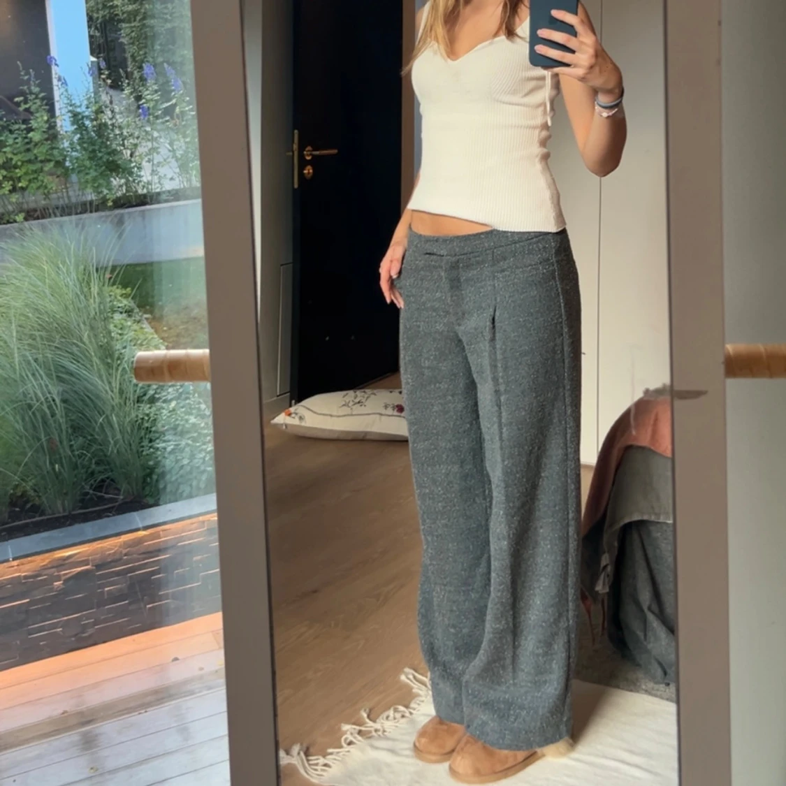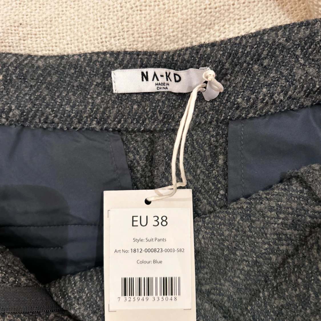 Blå lågmidjade kostymbyxor från NA-KD i storlek 38. Blandning av ull. Finns matchande överdel som jag säljer. Kontakta om interesserad