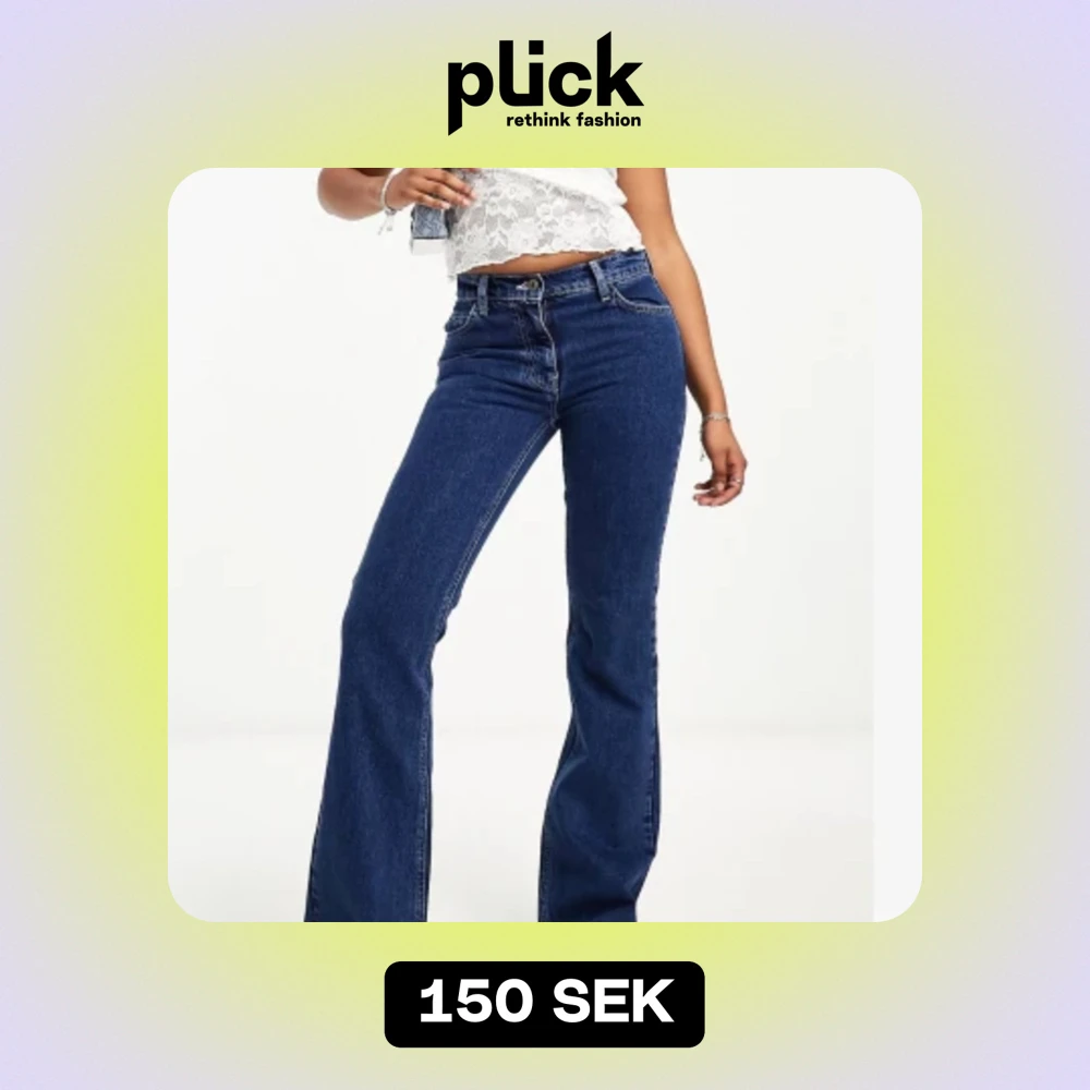 Blåa utsvängda och medelhöga jeans utan stretch och ljusa sömmar🤠 aldrig använda!! Storlek 34 och längd 32 (M-L)
