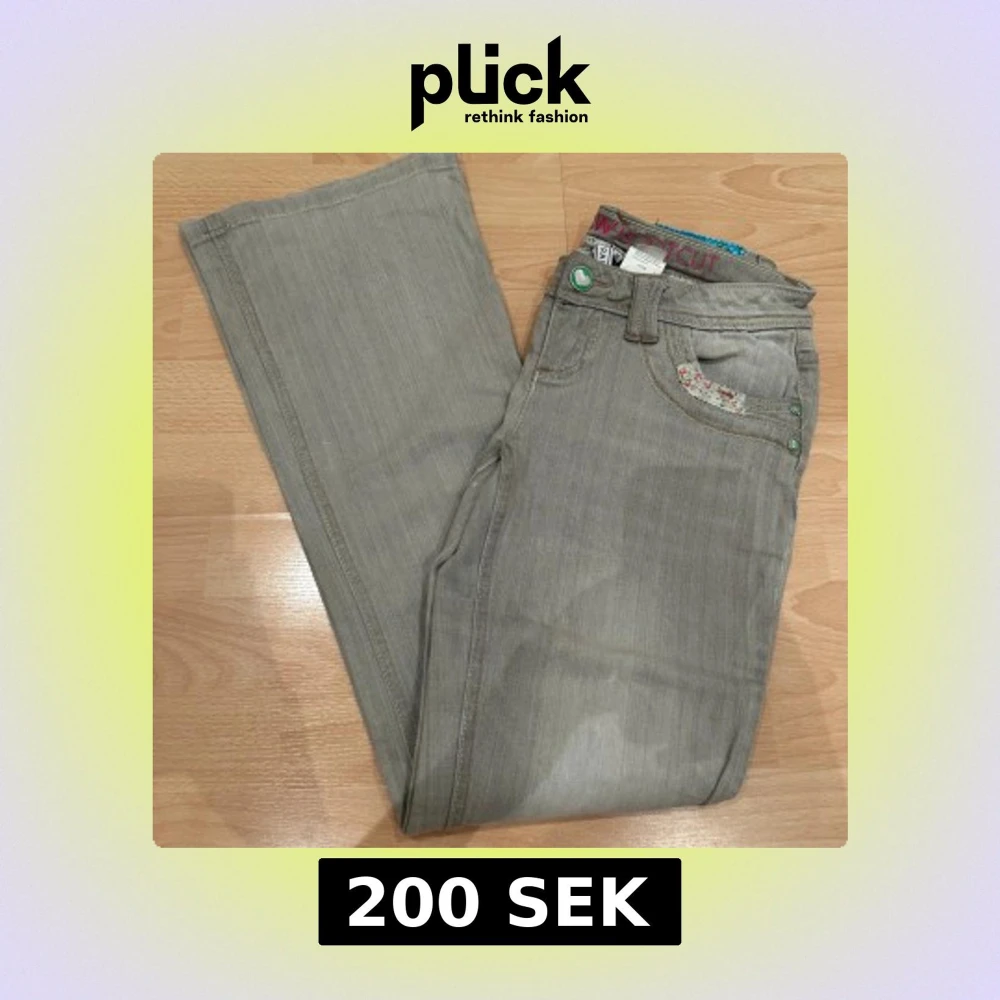 Snygga grå bootcut jeans från Rainbow. Jeansen har en klassisk femficksdesign och knappar som ger en cool kontrast. Perfekta för en avslappnad stil. Älskar verkligen dessa och är så fina på🩷
