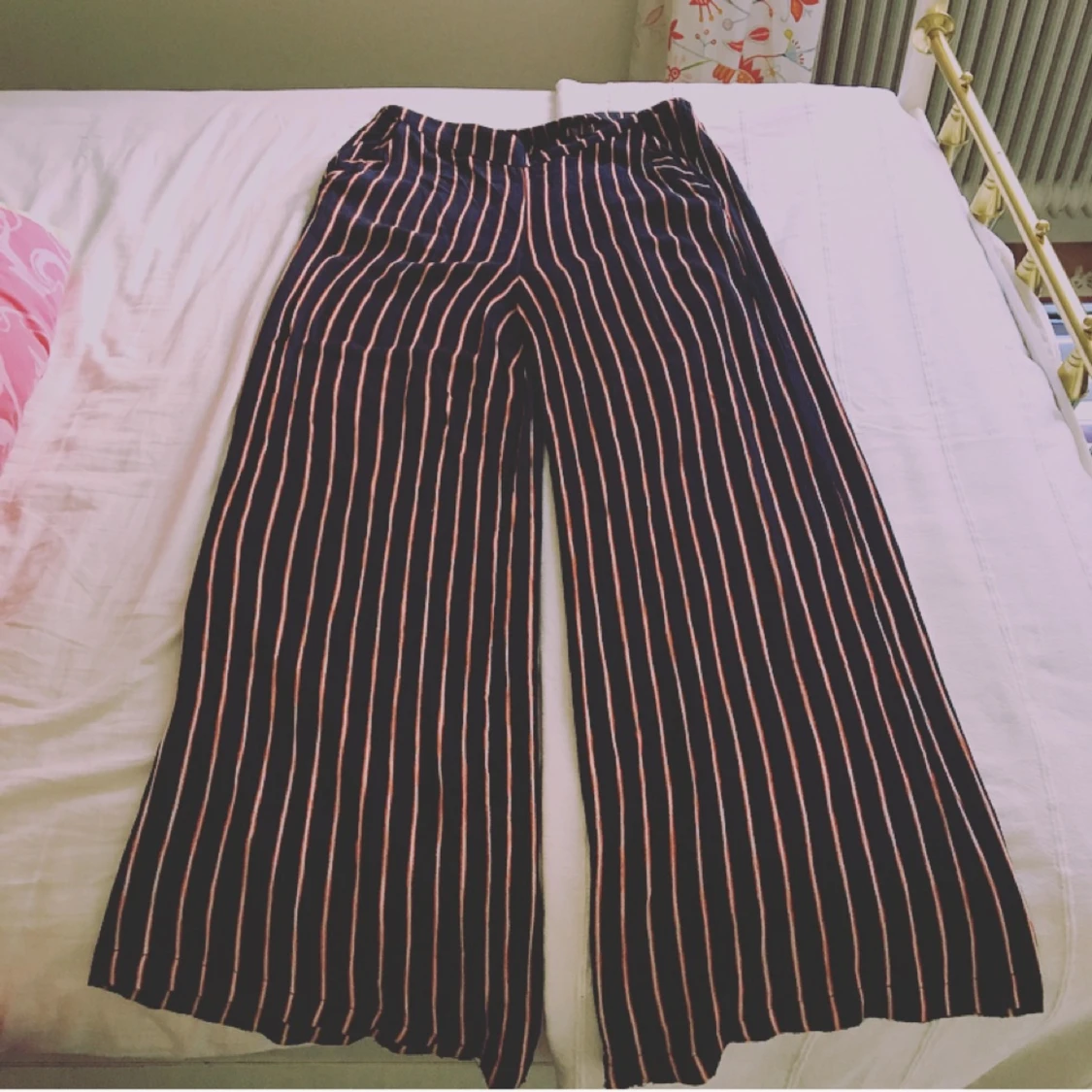 Bekväma och snygga bootcut/utsvängda byxor från Woolworths👌💃 Byxorna är mörkblåa med röda och vita ränder. Använda endast en gång
