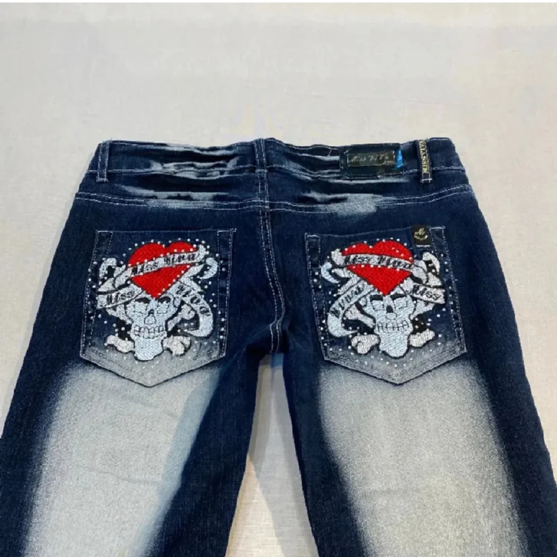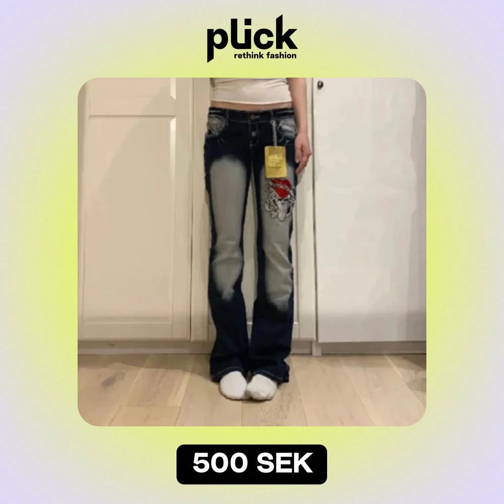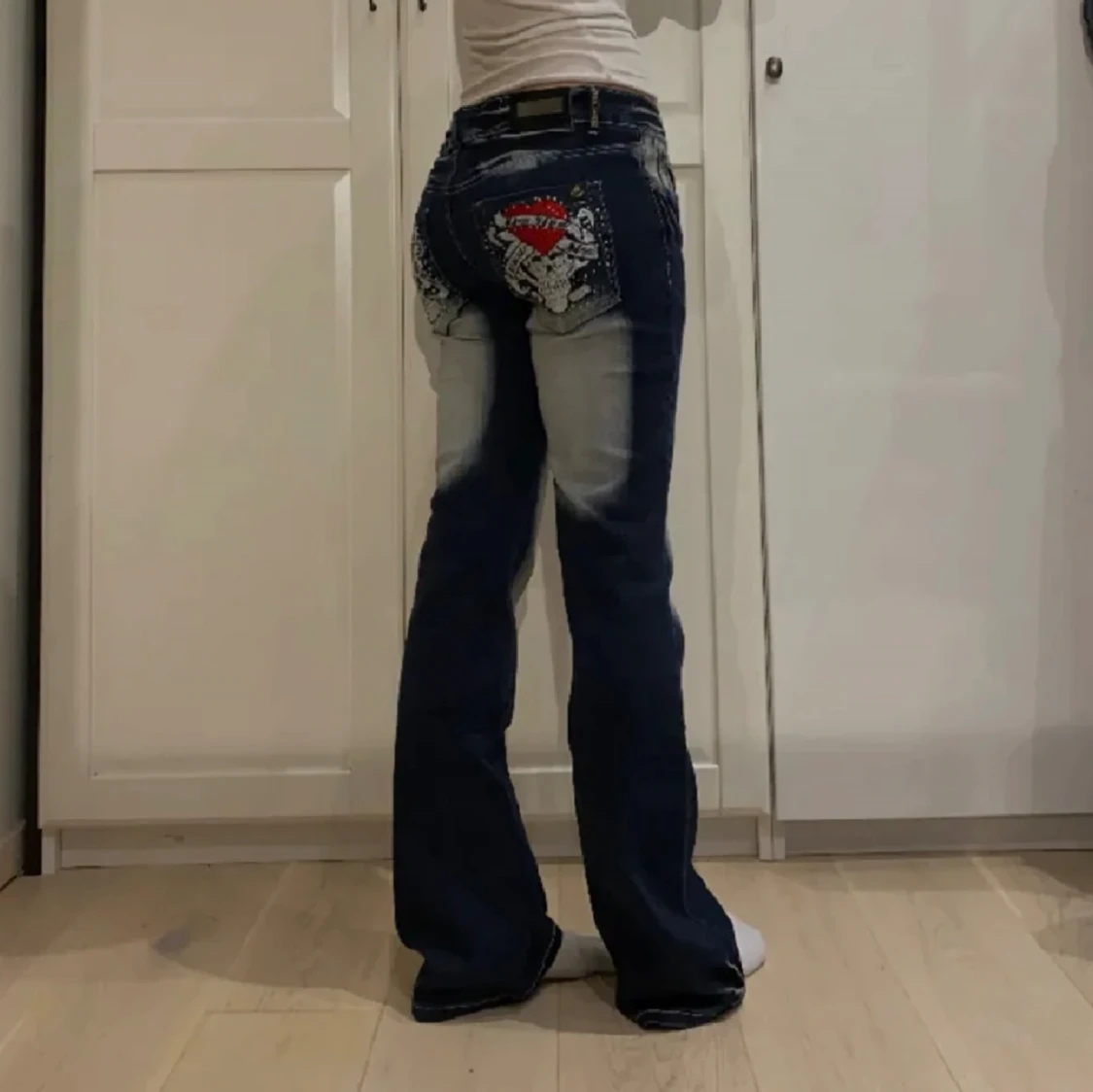 Suuuper snygga ed hardy liknande bootcut lowwaist byxor , de har inga defekter och är knappt andvända . Skriv till mig för fler frågor 💕