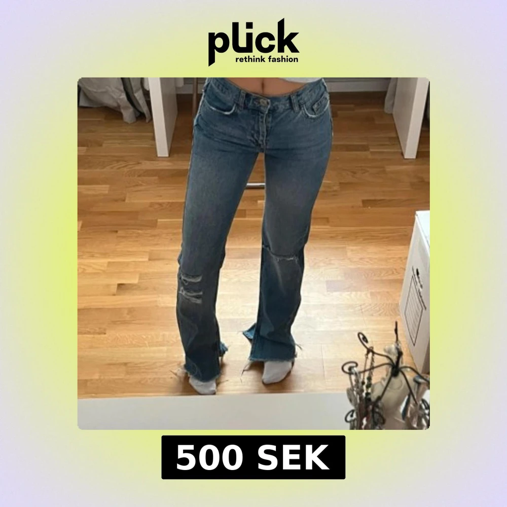 Sååå snygga jeans från pull and bear. Utsvängda med slits och håll. Strl 34💙 #pull&bear #bootcut #jeans #lowwaist #y2k #vintage #blåjeans